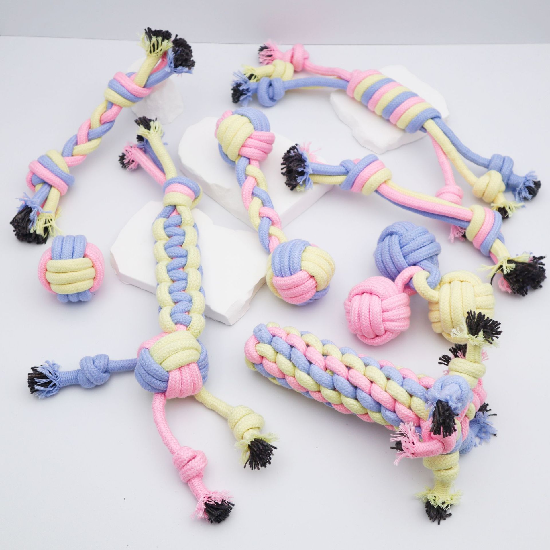 공장 직판 면 로프 매듭 장난감 인기 애완용품 해외 도매 내구성 있는 상호작용 강아지 장난감 해외 인기 상품스토어 가기