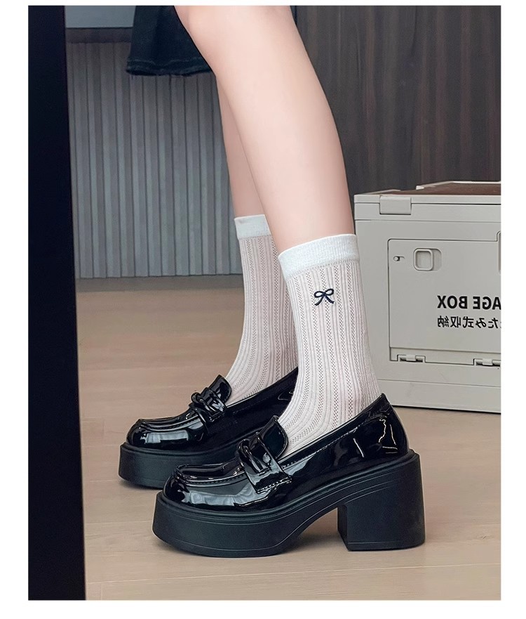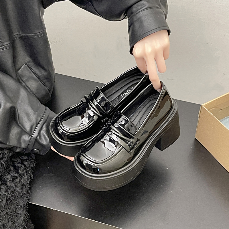 패션 영국 스타일 올 매치 로퍼 여성 2024 년 여름 새로운 프랑스 편안한 두꺼운 미끄럼 방지 높이 증가 작은 가죽 신발