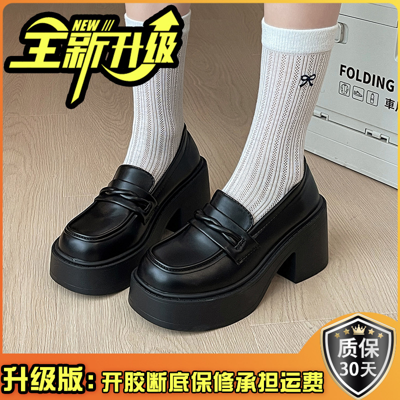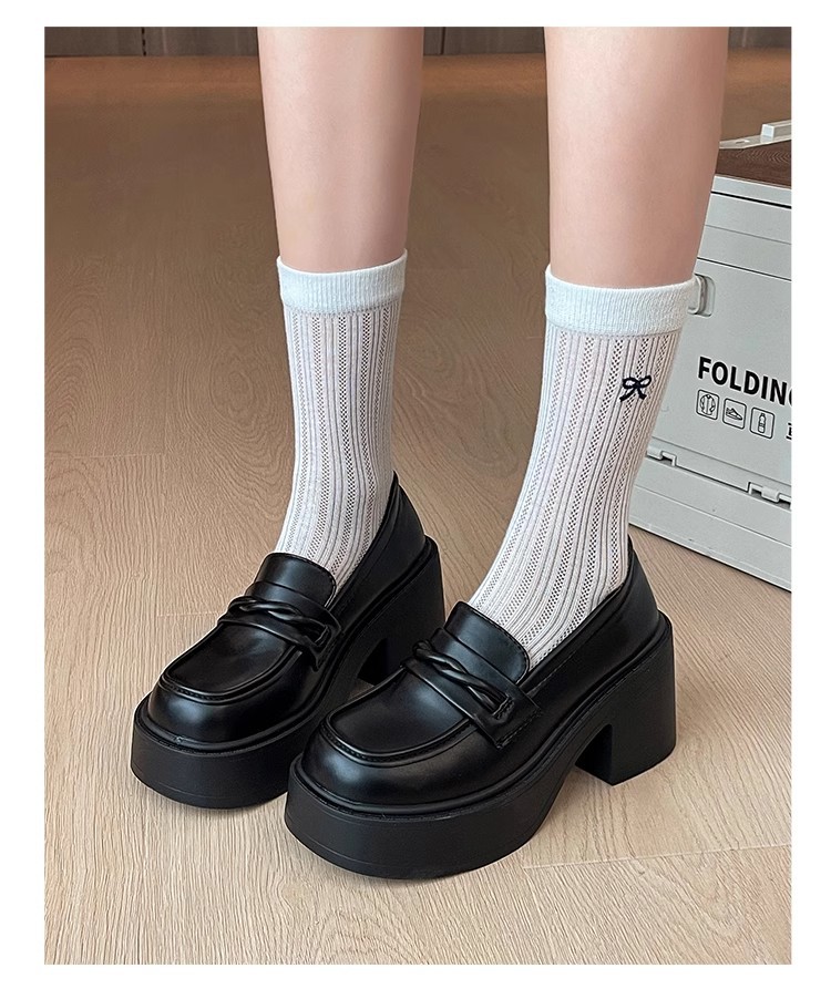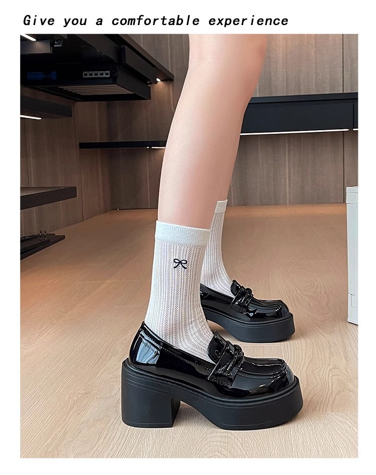 패션 영국 스타일 올 매치 로퍼 여성 2024 년 여름 새로운 프랑스 편안한 두꺼운 미끄럼 방지 높이 증가 작은 가죽 신발스토어 가기