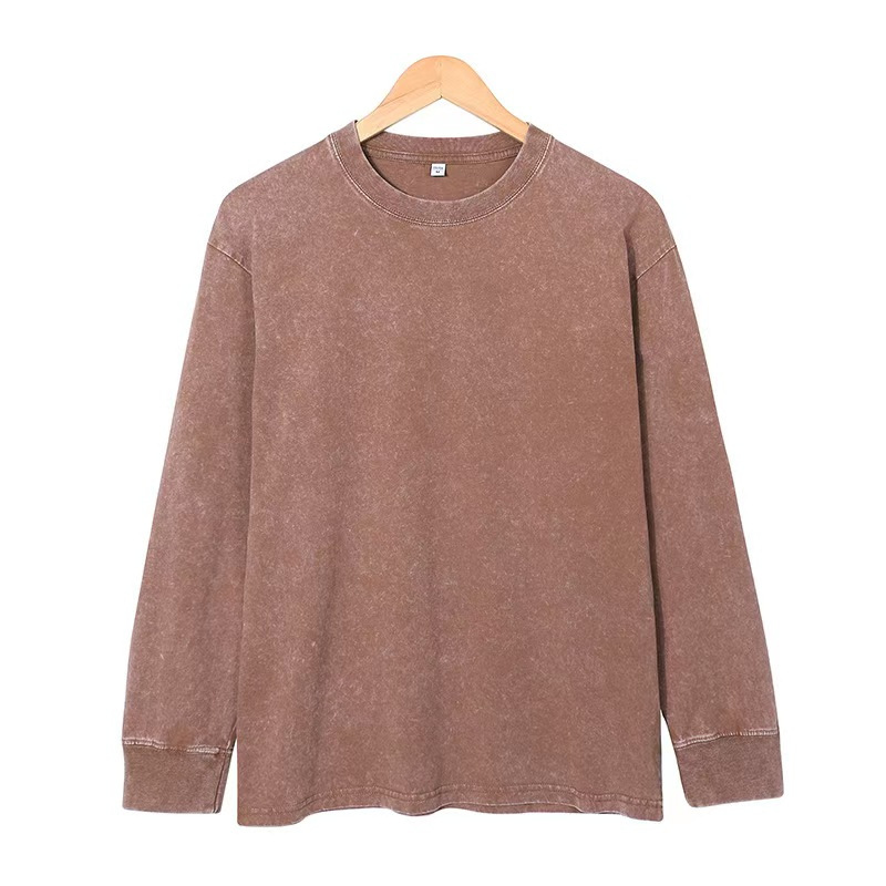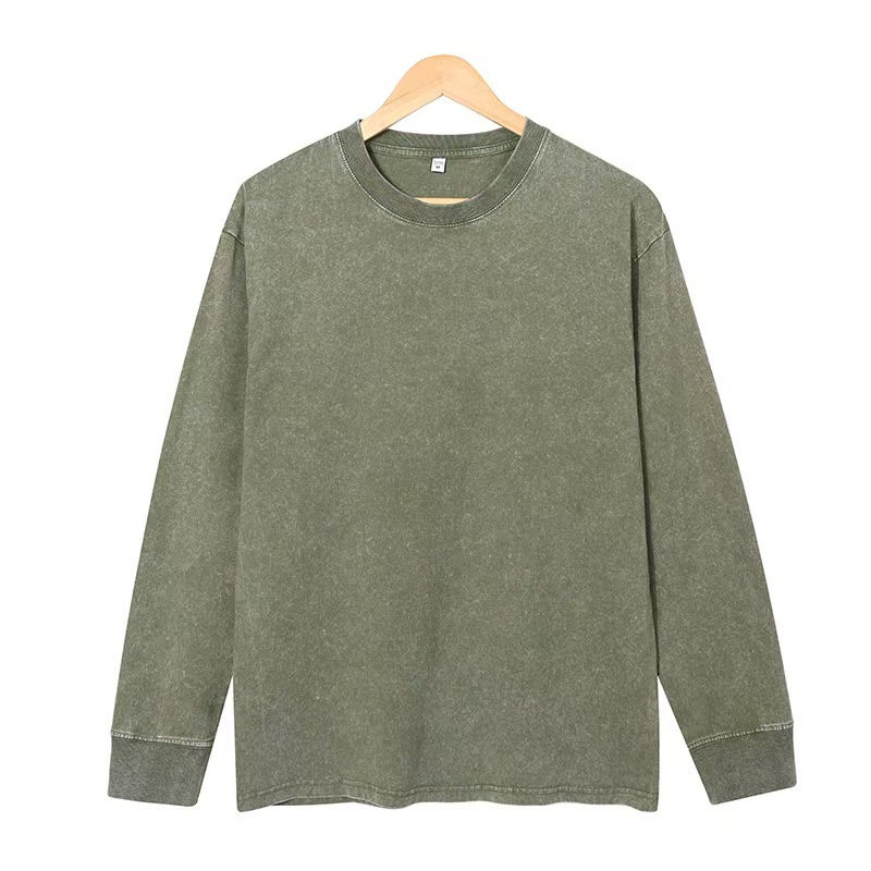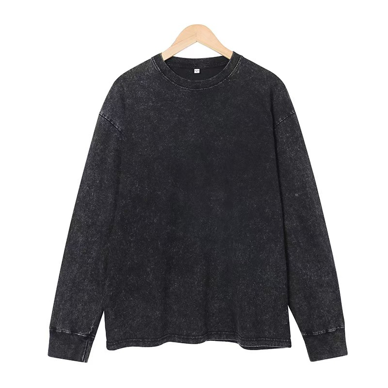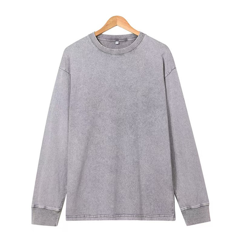 230g 헤비급 바틱 워시 올드 퓨어 코튼 긴팔 아메리칸 레트로 오프 숄더 루즈 버전 라운드 넥 캐주얼 스웨트 셔츠 남성용