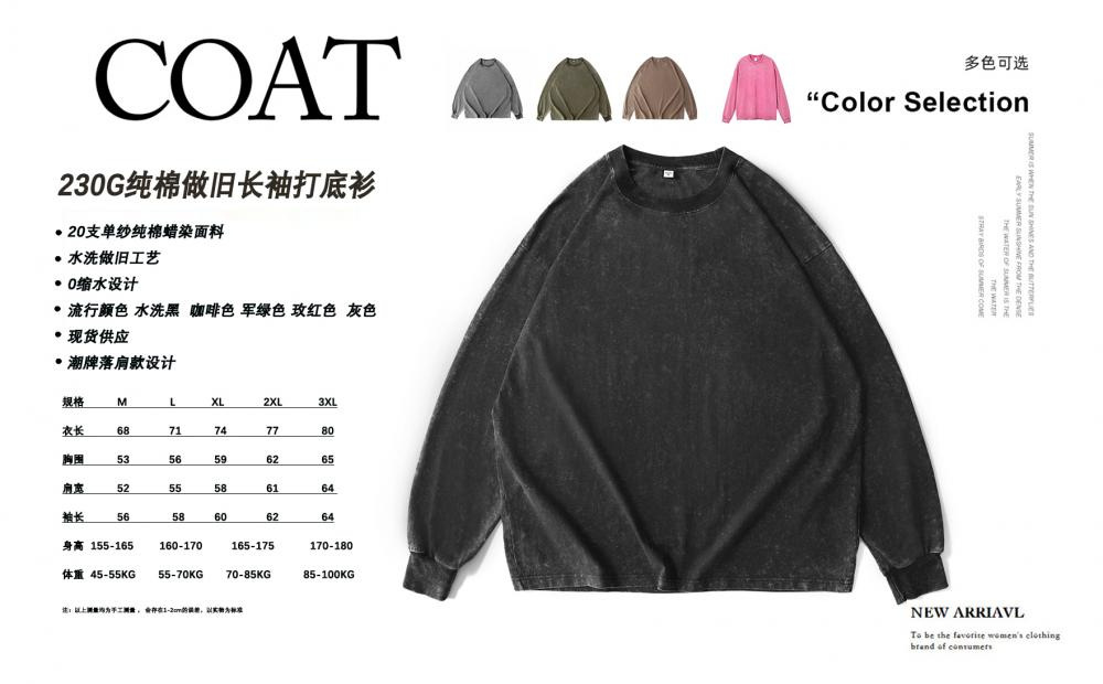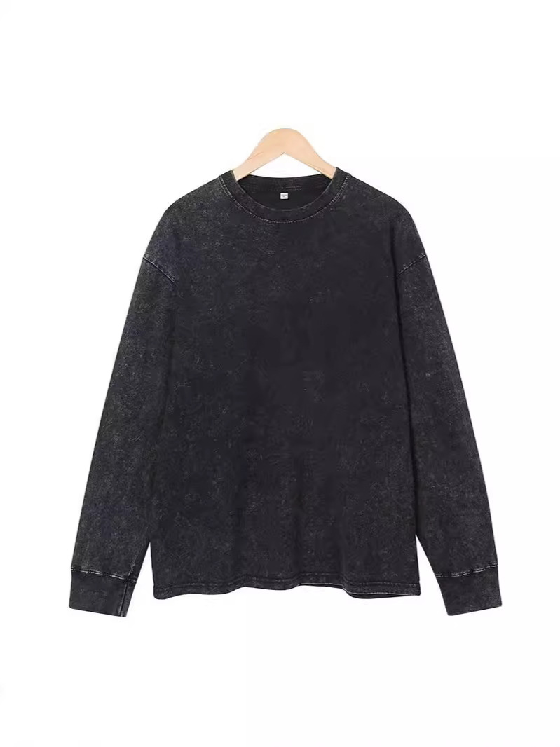 230g 헤비급 바틱 워시 올드 퓨어 코튼 긴팔 아메리칸 레트로 오프 숄더 루즈 버전 라운드 넥 캐주얼 스웨트 셔츠 남성용스토어 가기