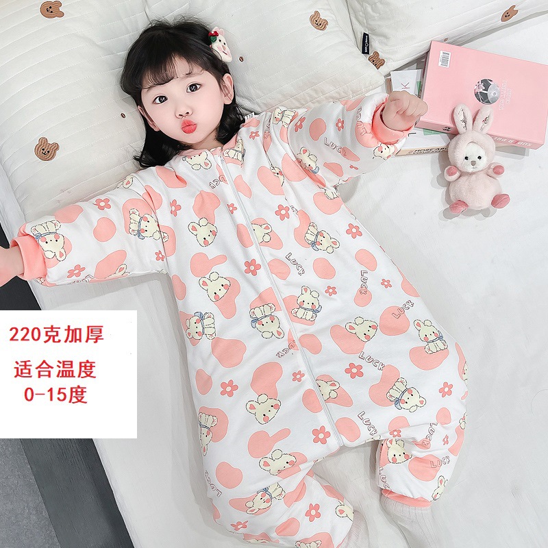 아기 침낭 가을 겨울용 유아용 다리 분리형 어린이 일체형 잠옷 아동용 보온 A급 안전 등급 순면