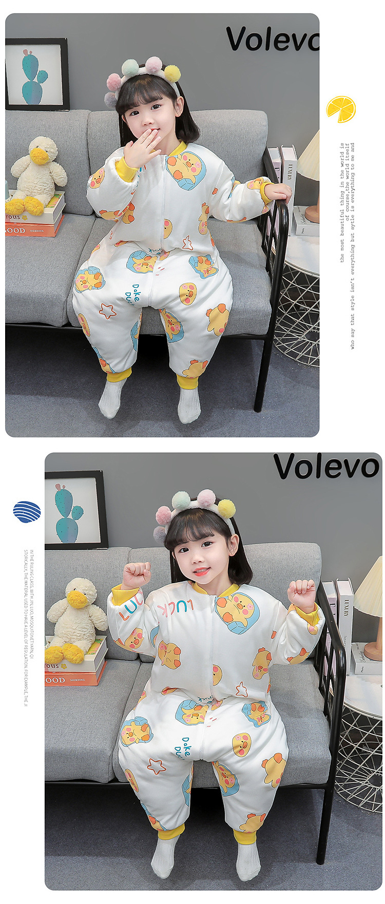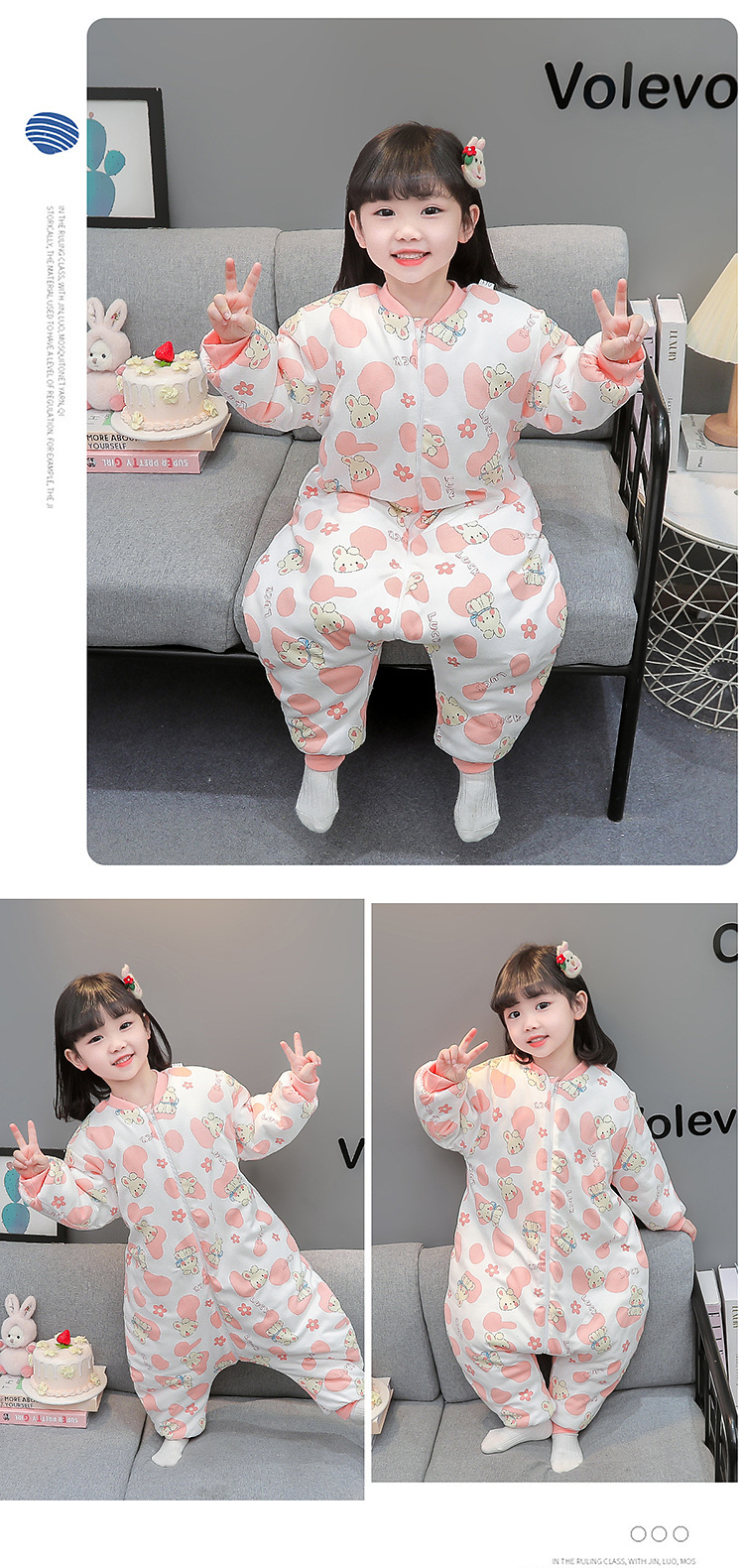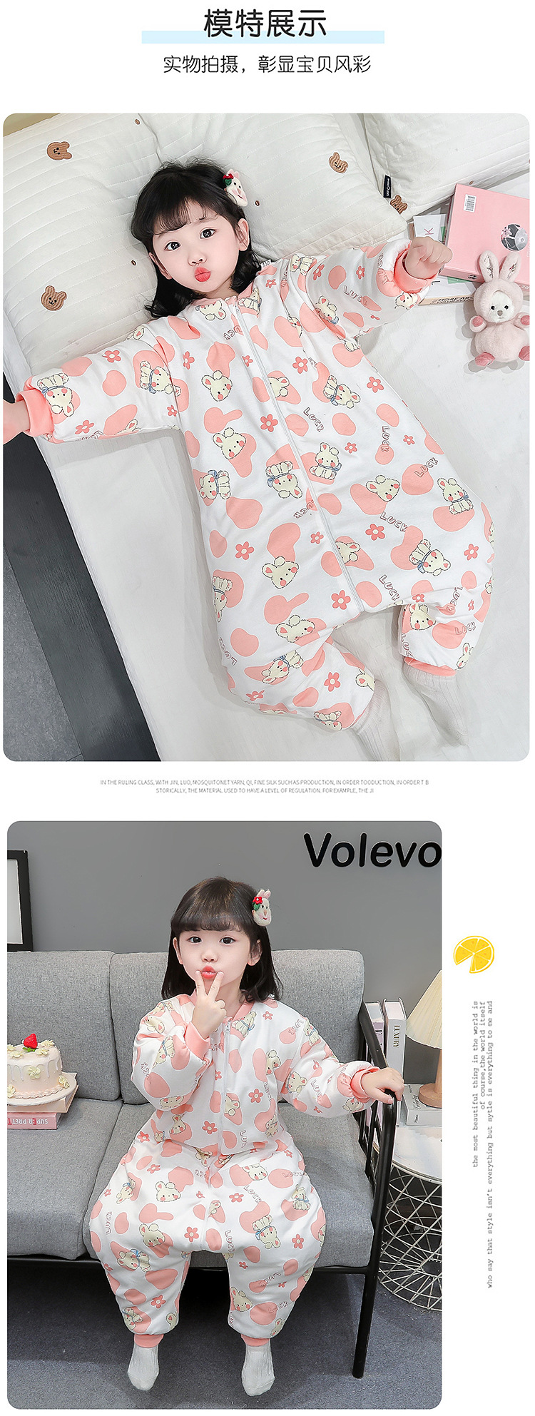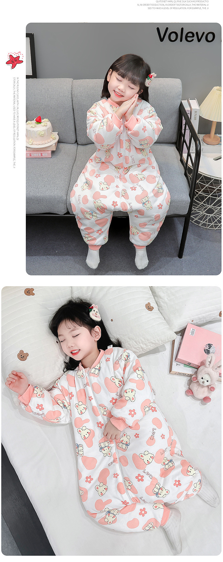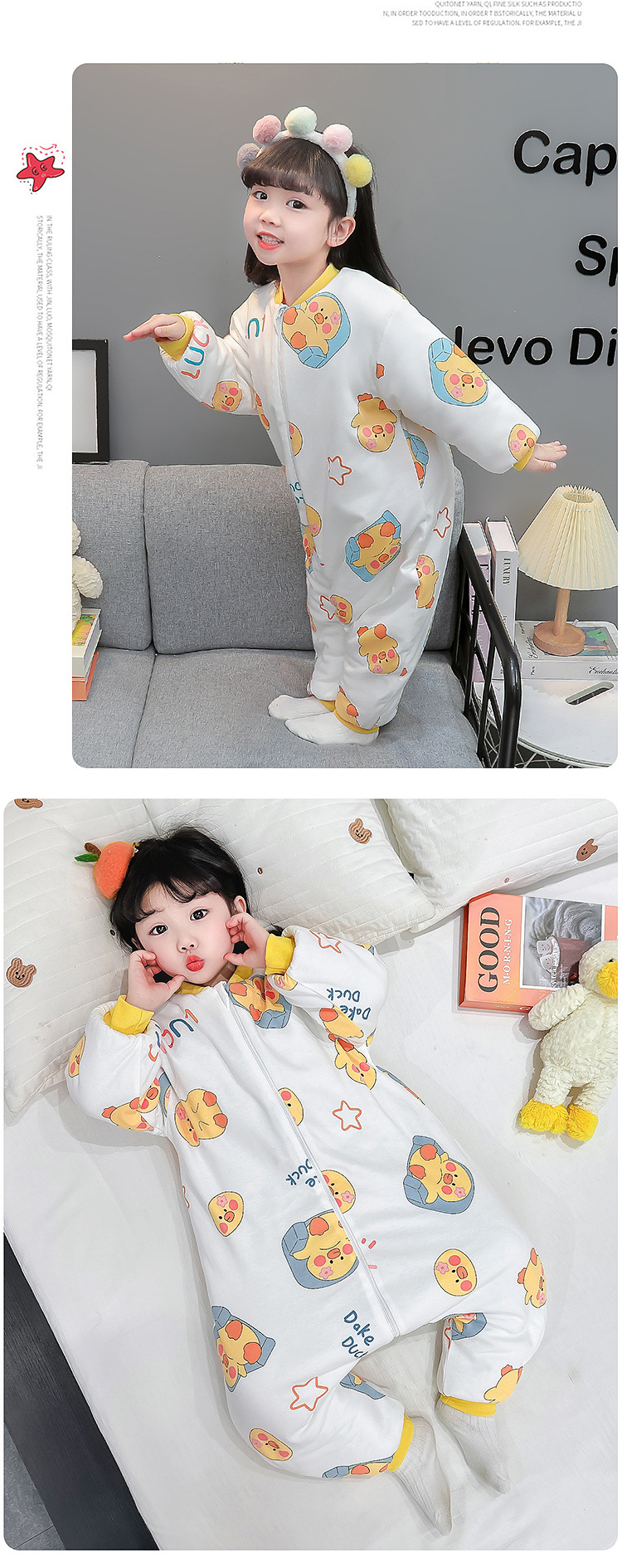 아기 침낭 가을 겨울용 유아용 다리 분리형 어린이 일체형 잠옷 아동용 보온 A급 안전 등급 순면스토어 가기