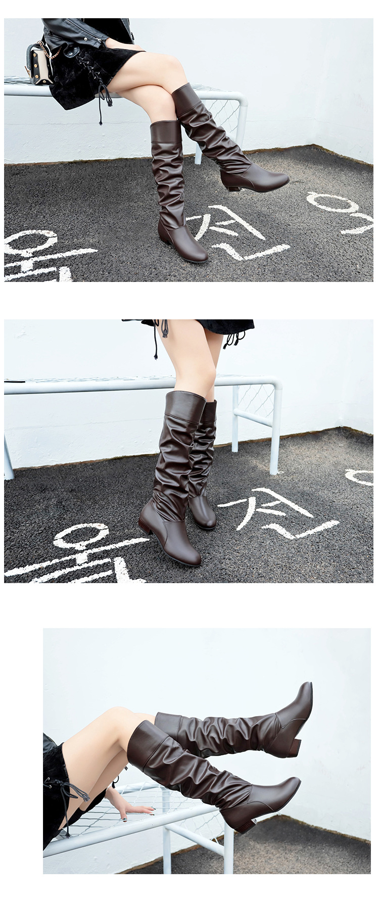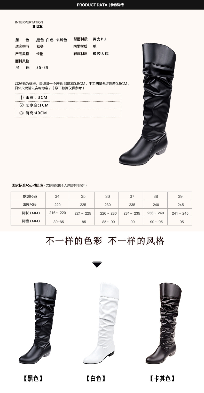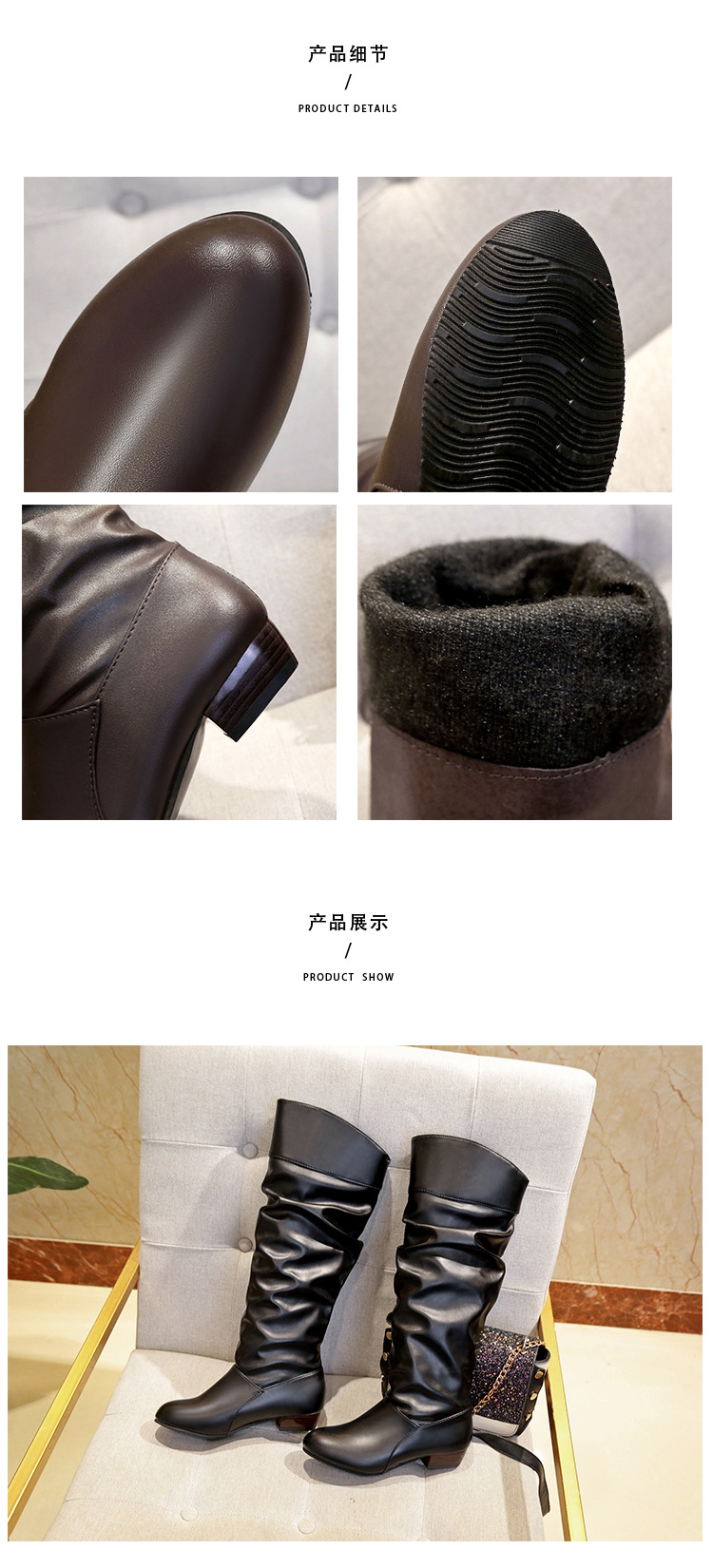 2024 년 가을 겨울 새로운 국경 대외 무역 플러스 사이즈 여성 부츠 낮은 굽 두꺼운 부츠 유럽과 미국의 주름진 슬리브 부츠 여성스토어 가기