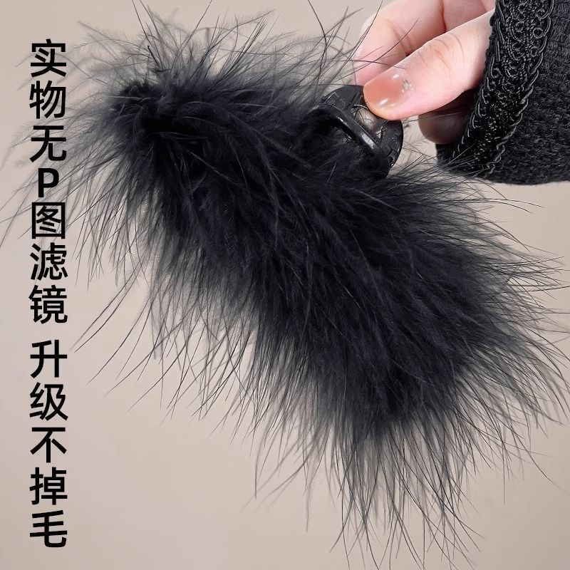 가을과 겨울 타조 머리 큰 머리핀 여성의 2024 새로운 등 머리 상어 클립 고급 감각 깃털 잡아 머리핀스토어 가기