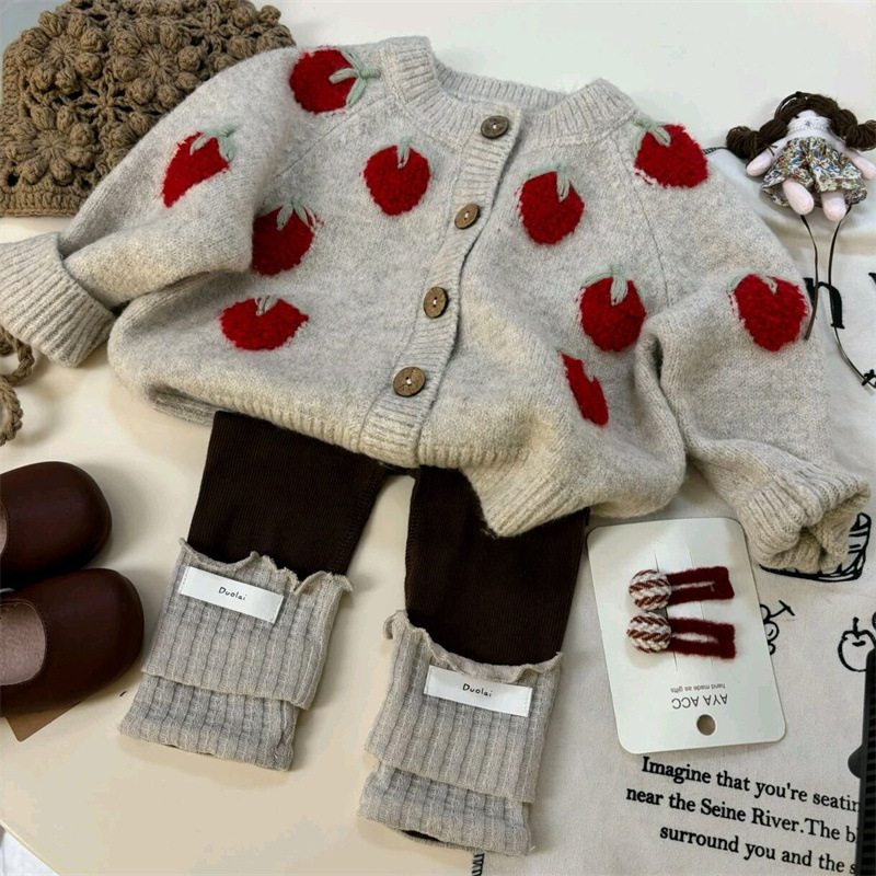 스위트 리틀 걸즈 가을 의류 세트 25 신상 아동복 여아 봄 가을 딸기 니트 자켓 가디건 투피스 세트