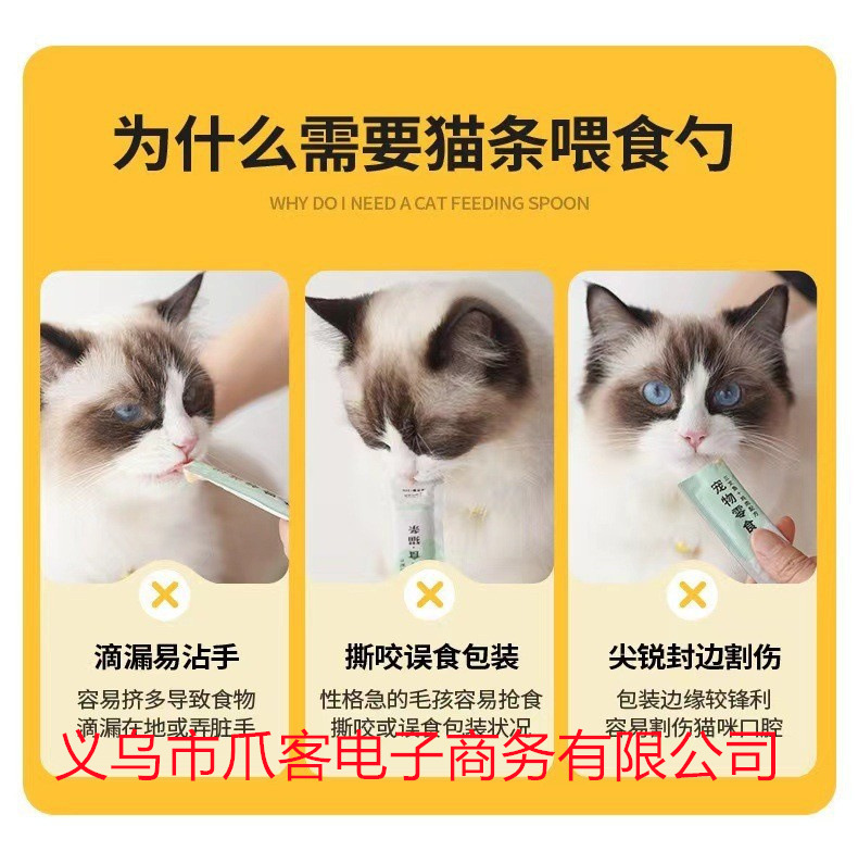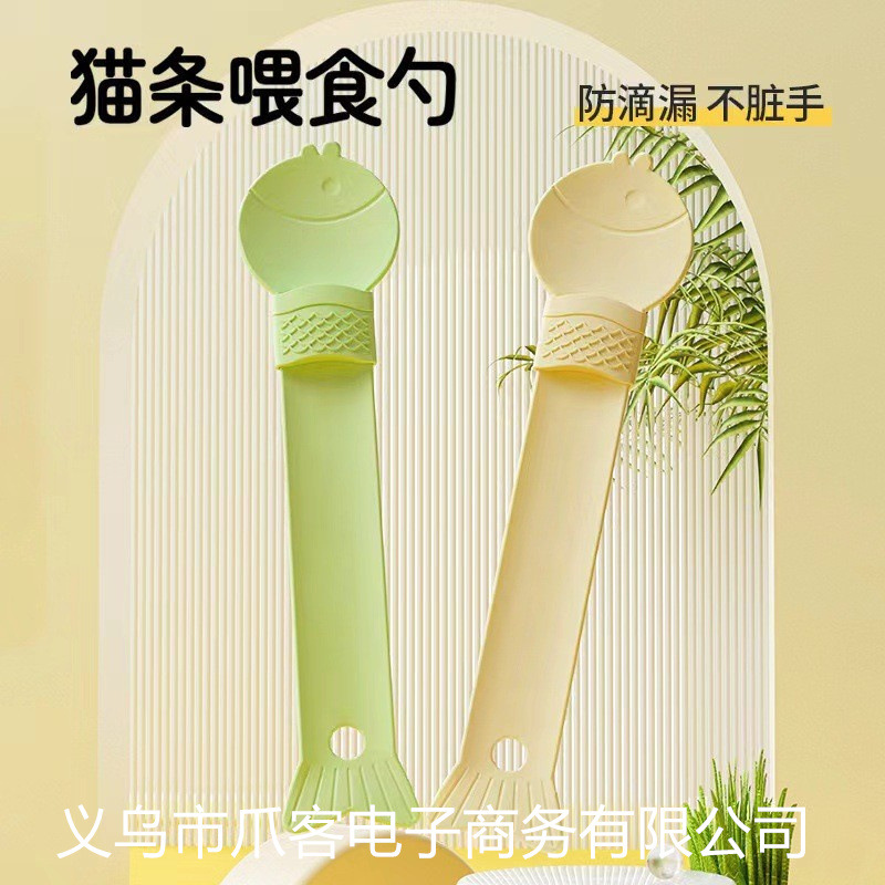 고양이 귀여운 피더 고양이 스트립 짜기 유물 애완 동물 간식 고기 진흙 고양이 먹이 숟가락 긴 손잡이 이중 목적 숟가락스토어 가기