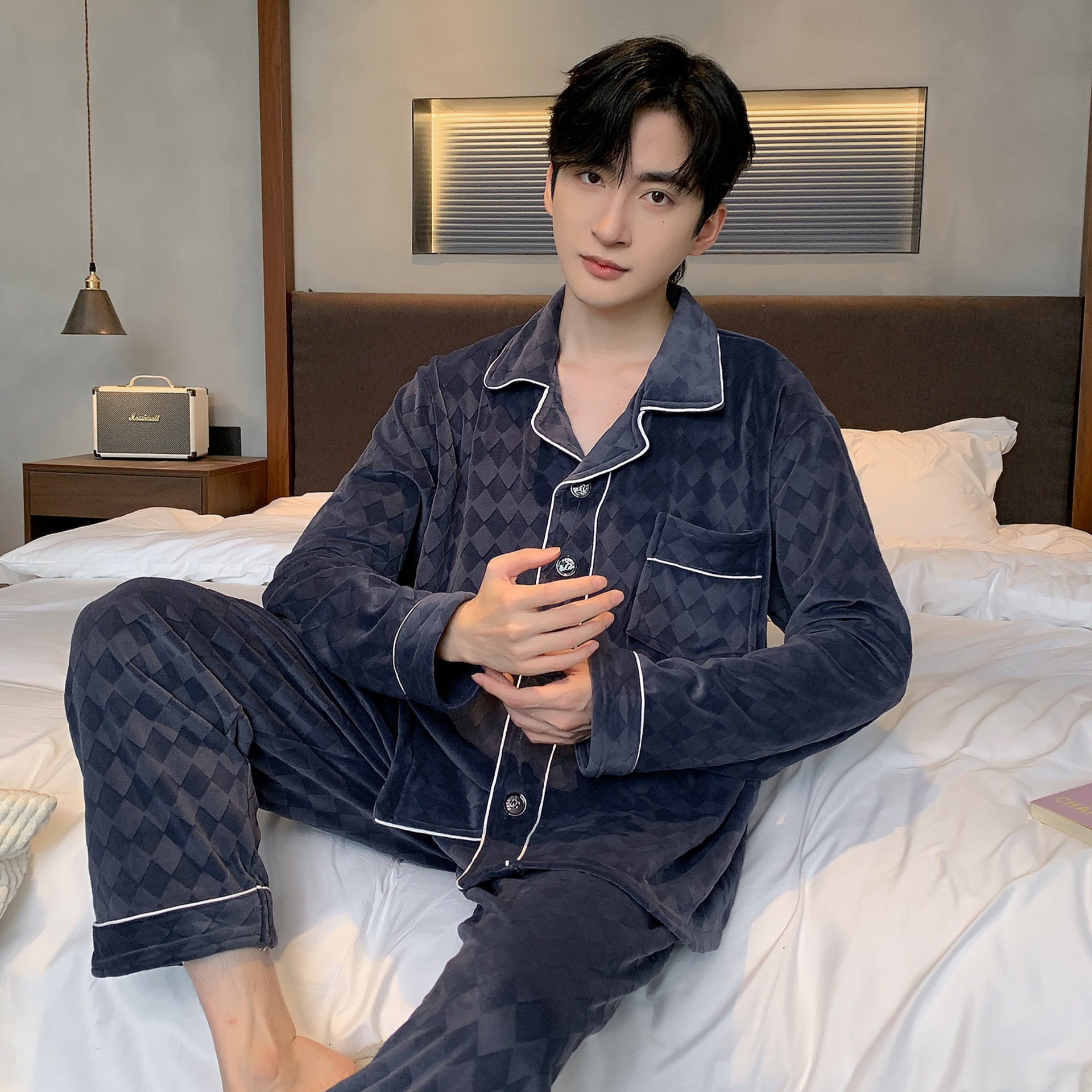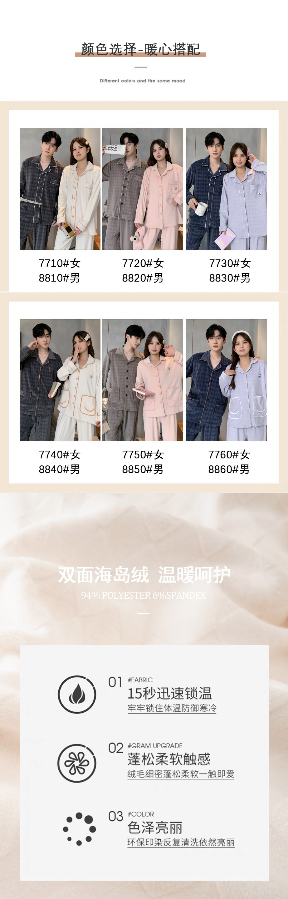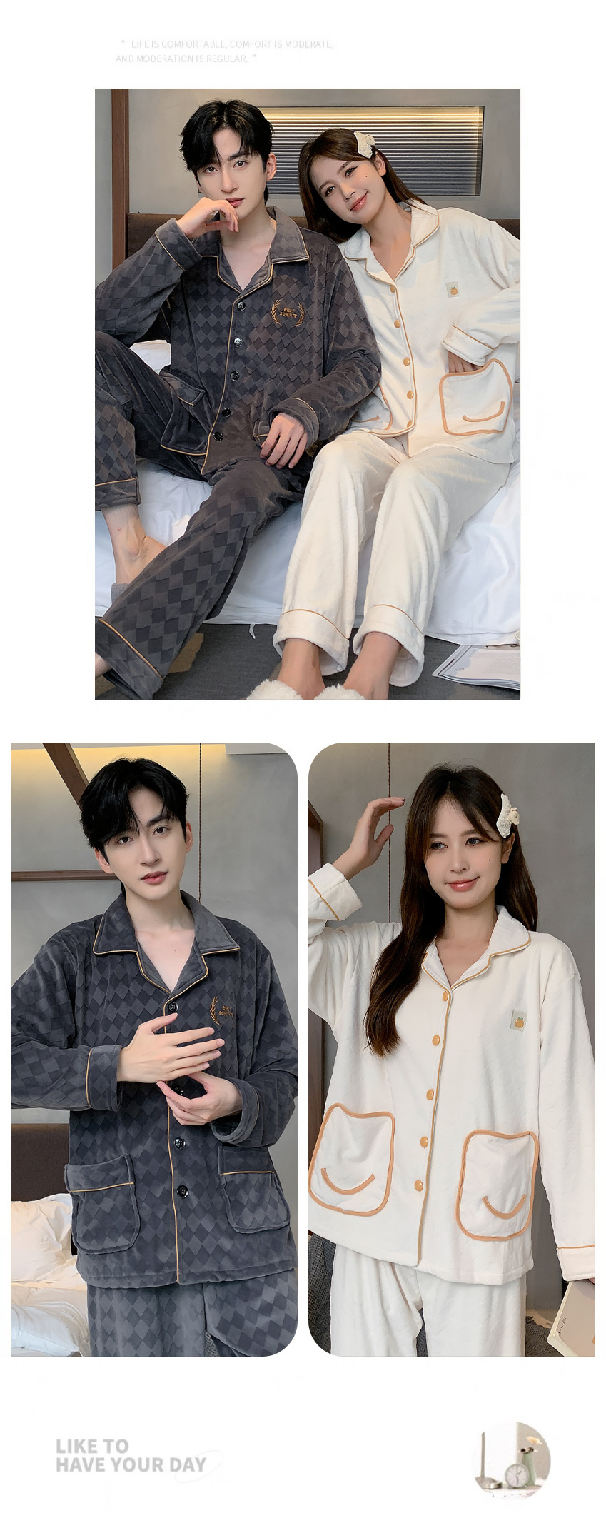 새로운 섬 벨벳 커플 잠옷 여성용 가을 겨울 따뜻한 고급 얇은 벨벳 남성용 겨울 홈웨어 세트스토어 가기