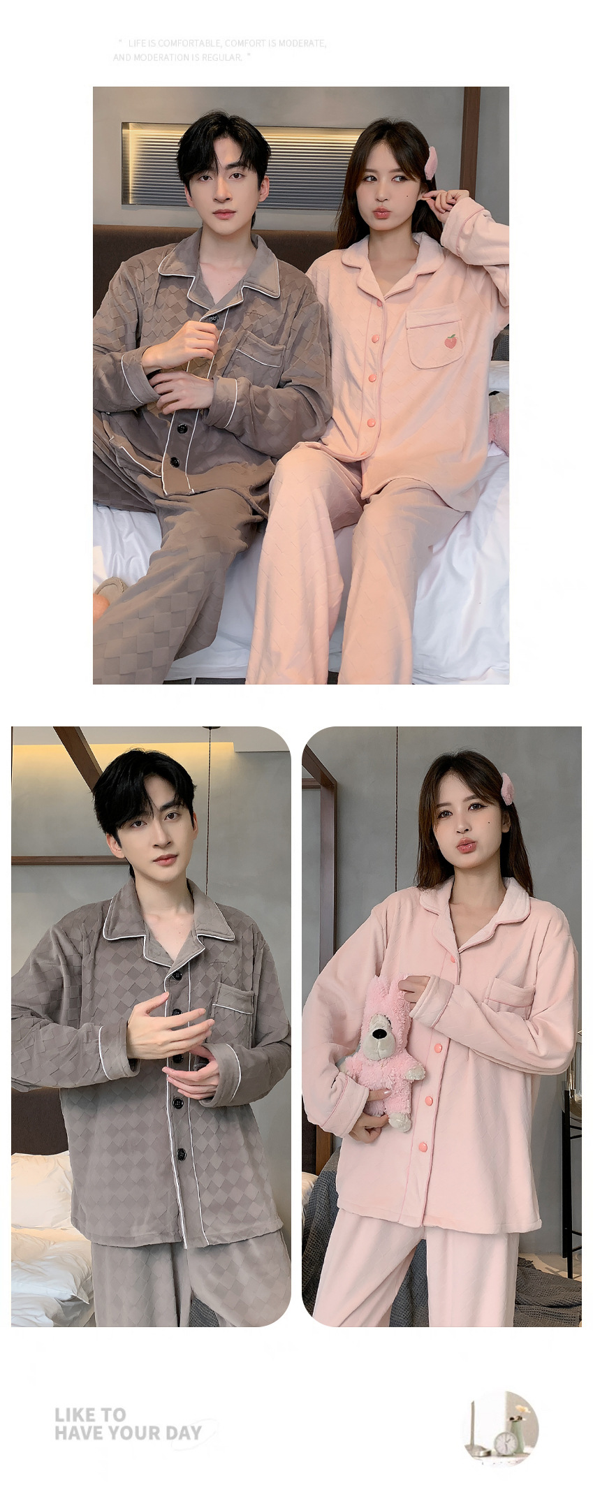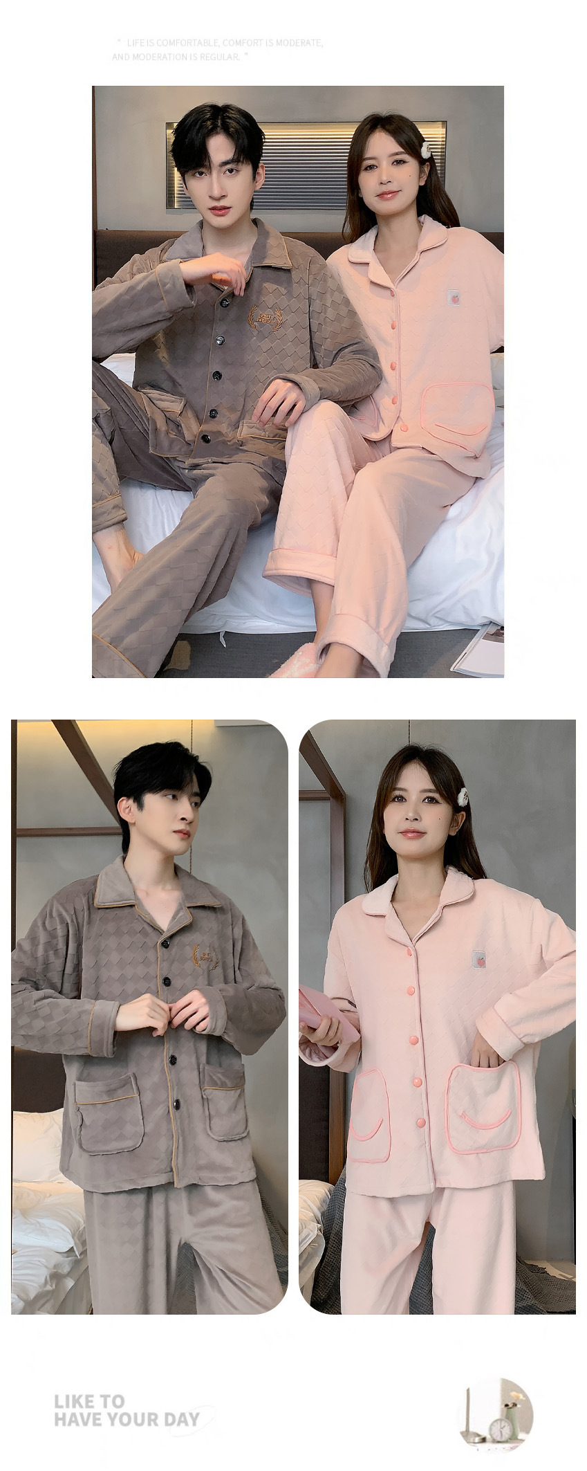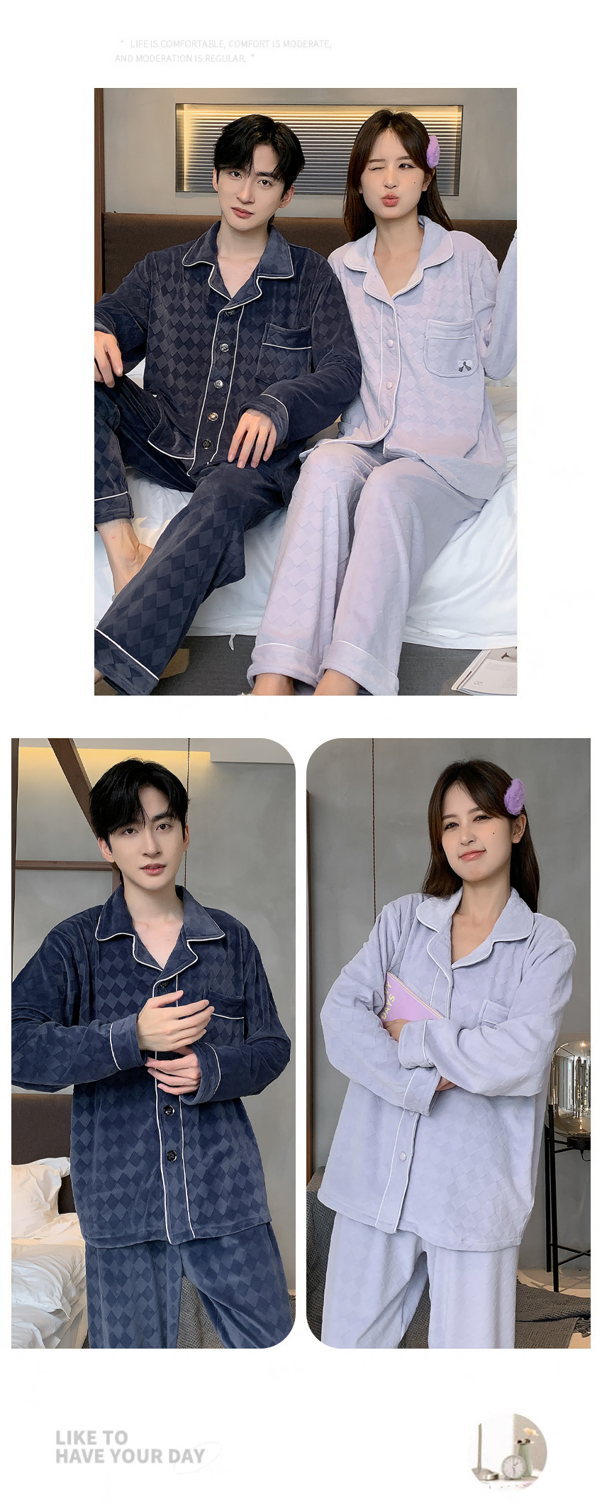 새로운 섬 벨벳 커플 잠옷 여성용 가을 겨울 따뜻한 고급 얇은 벨벳 남성용 겨울 홈웨어 세트