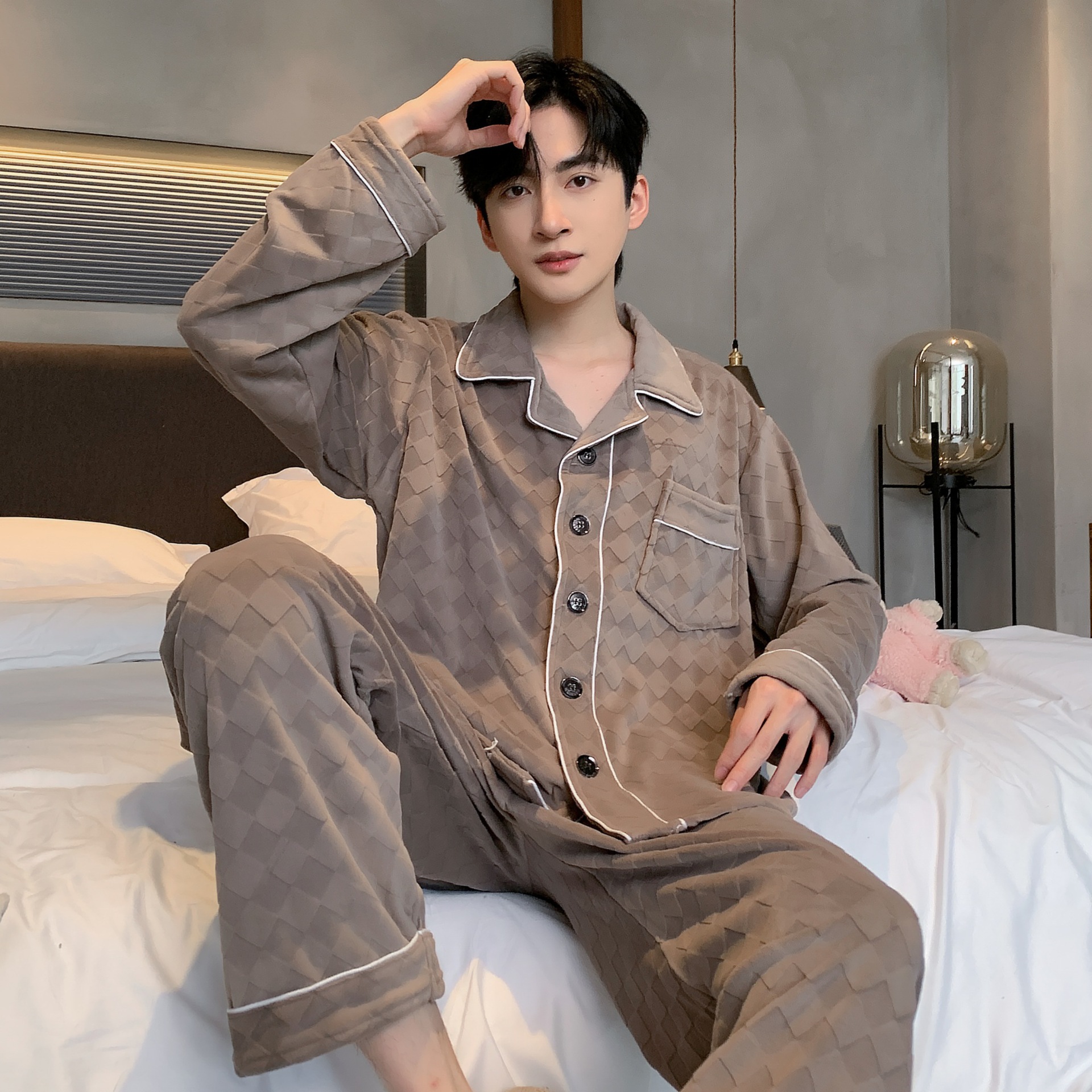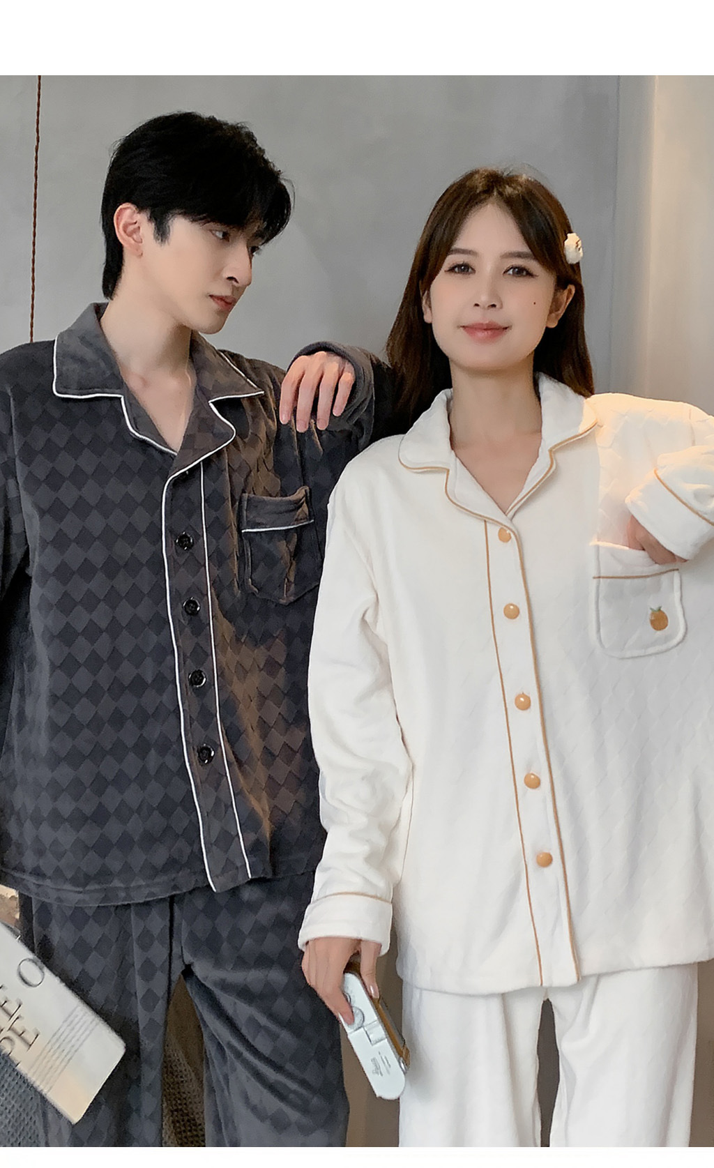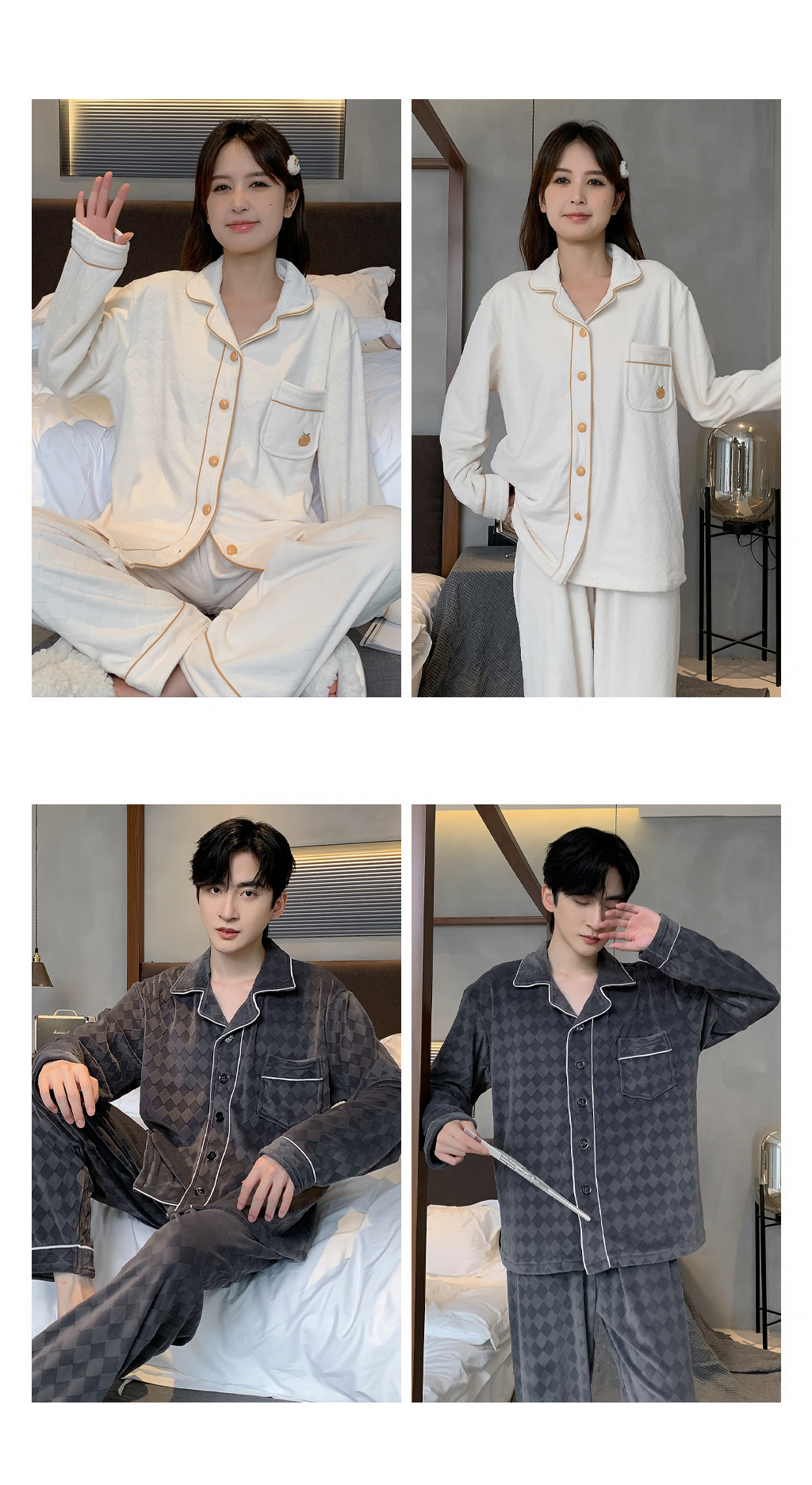 새로운 섬 벨벳 커플 잠옷 여성용 가을 겨울 따뜻한 고급 얇은 벨벳 남성용 겨울 홈웨어 세트
