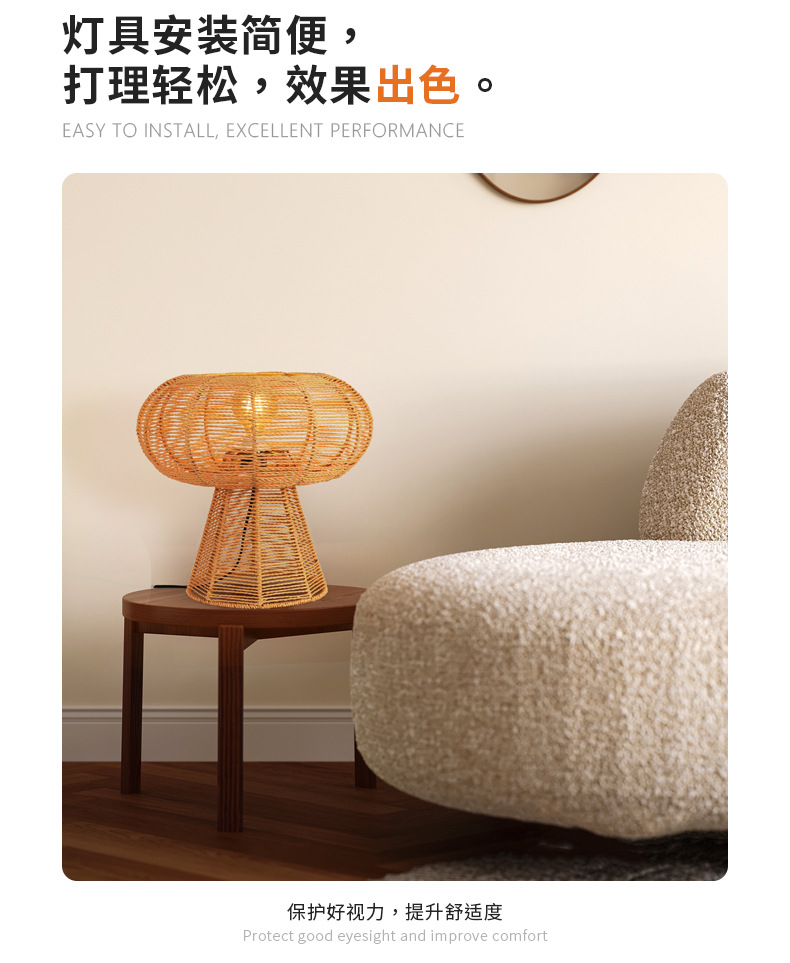 简约酒店民宿创意装饰台灯摩尼可MoniKe设计师出口东南亚麻绳灯具