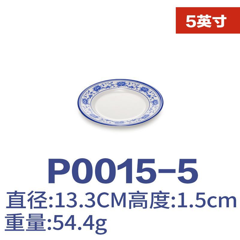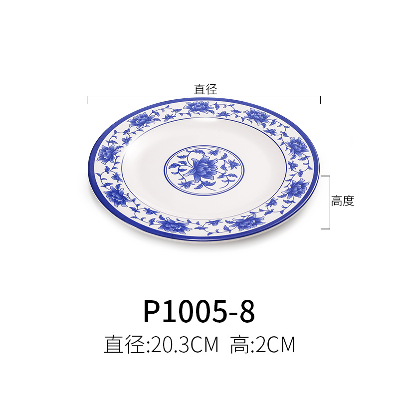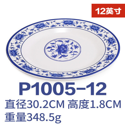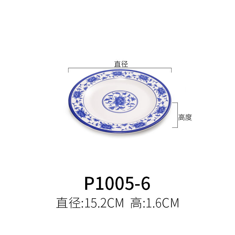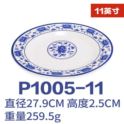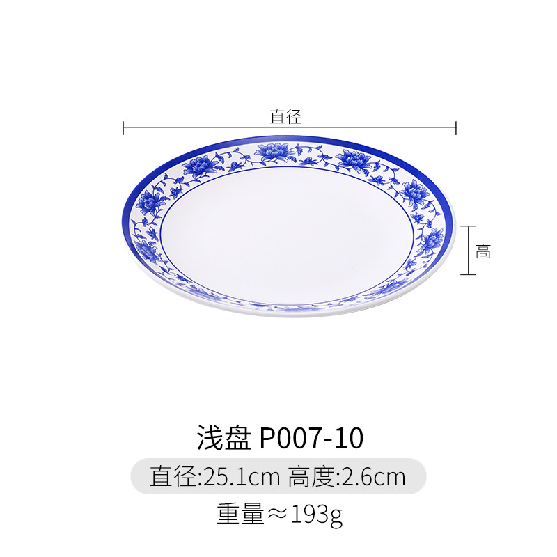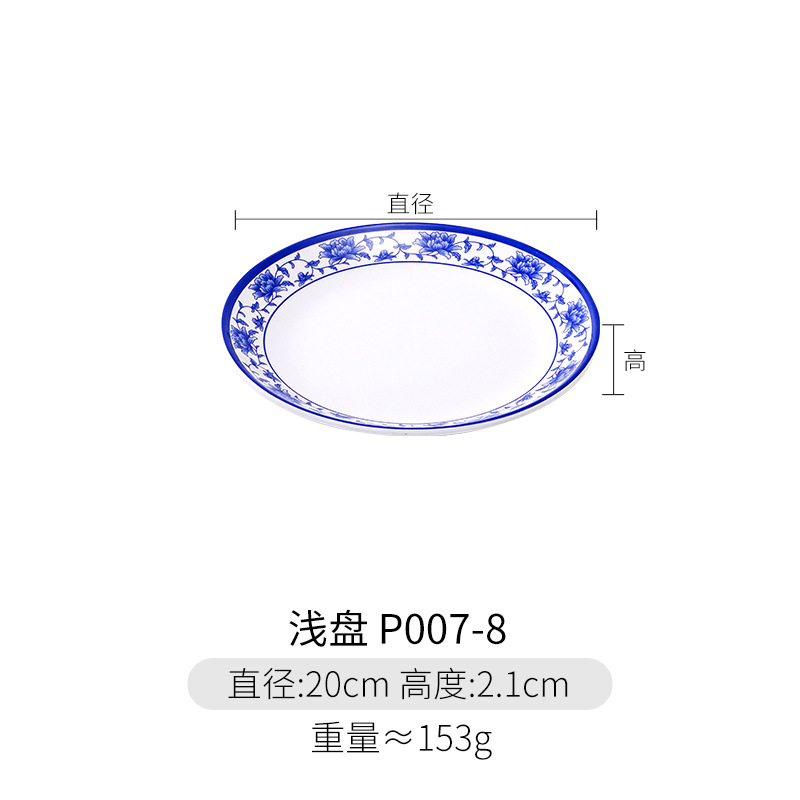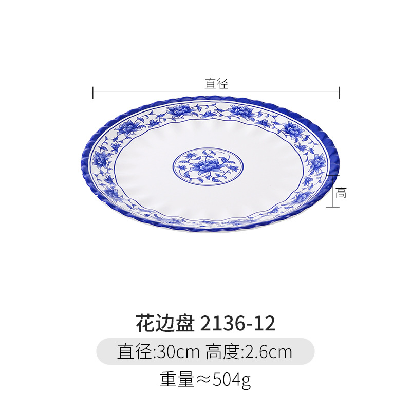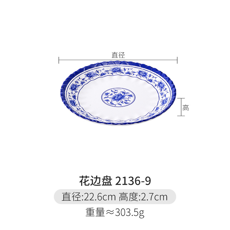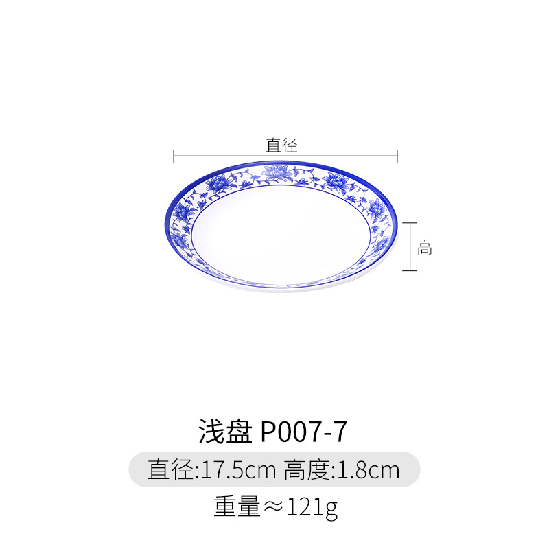 파란색과 흰색 상업용 A5 멜라민 플레이트 플라스틱 둥근 평판 도자기 레스토랑 볶음 접시 레스토랑 접시 간식 접시스토어 가기