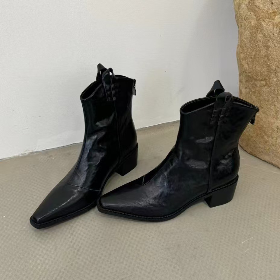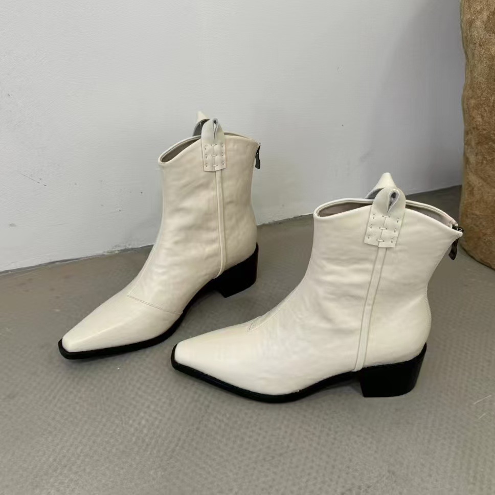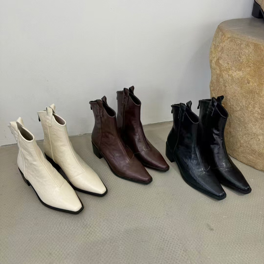 빈티지 포인팅 두꺼운 힐 부츠 여성의 2024 가을 및 겨울 새로운 프랑스 작은 발목 부츠 웨스턴 데님 V-입 마틴 부츠스토어 가기