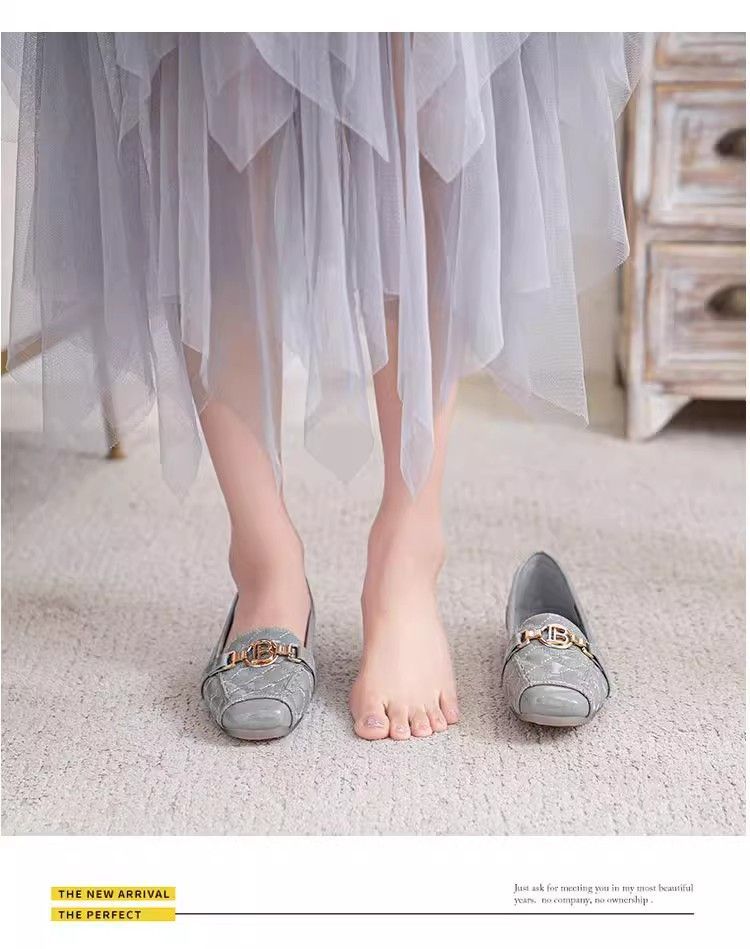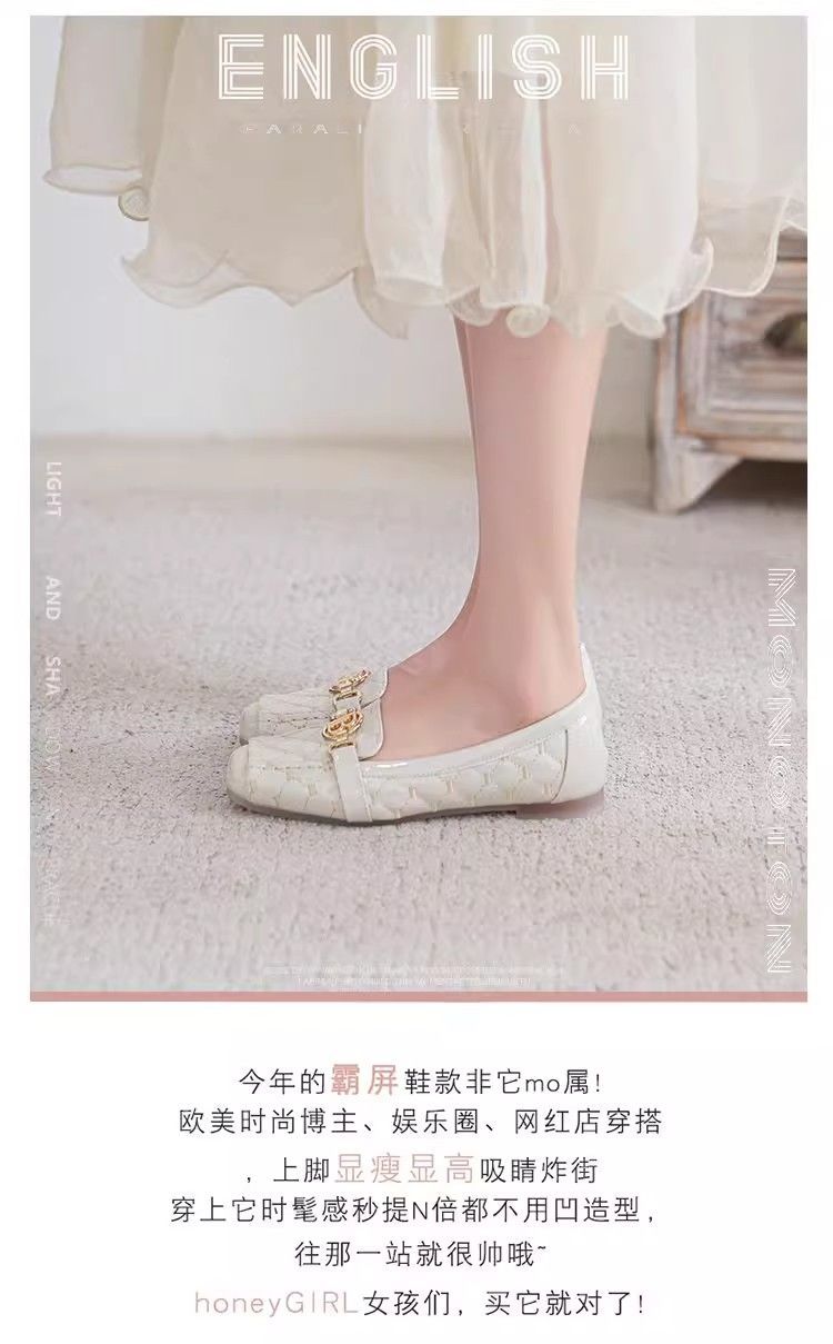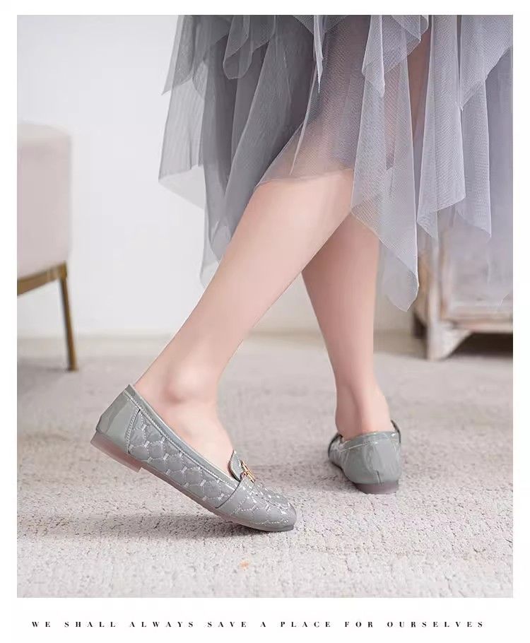 플러스 사이즈 스퀘어 헤드 밝은 가죽 신발 여성의 2024 봄과 가을 새로운 평면 부드러운 바닥 통기성 콩 신발 패션 어머니 신발스토어 가기