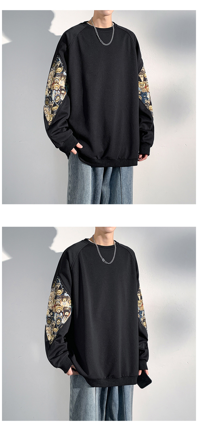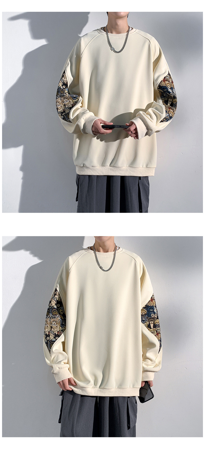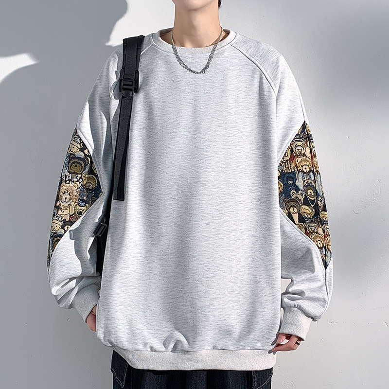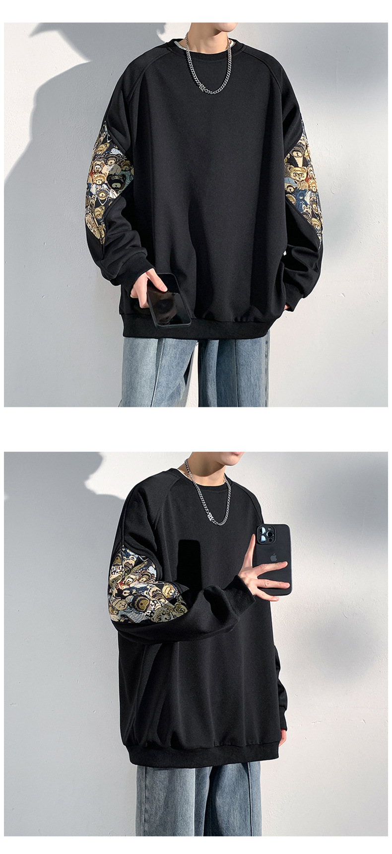 새로운 중국 스타일 베어 바느질 스웨트 남성 가을 트렌디 브랜드 전국 스타일 느슨한 파인애플 크루 넥 탑