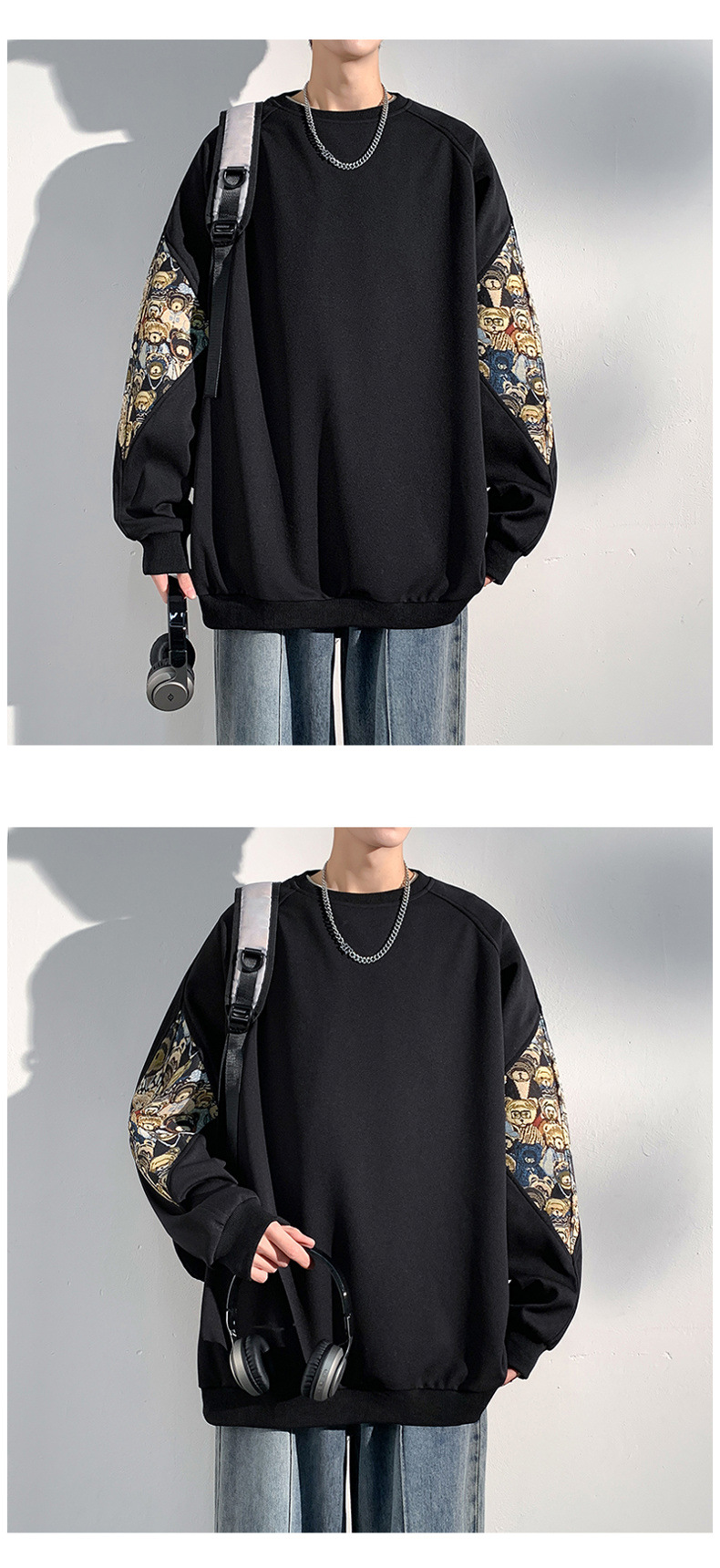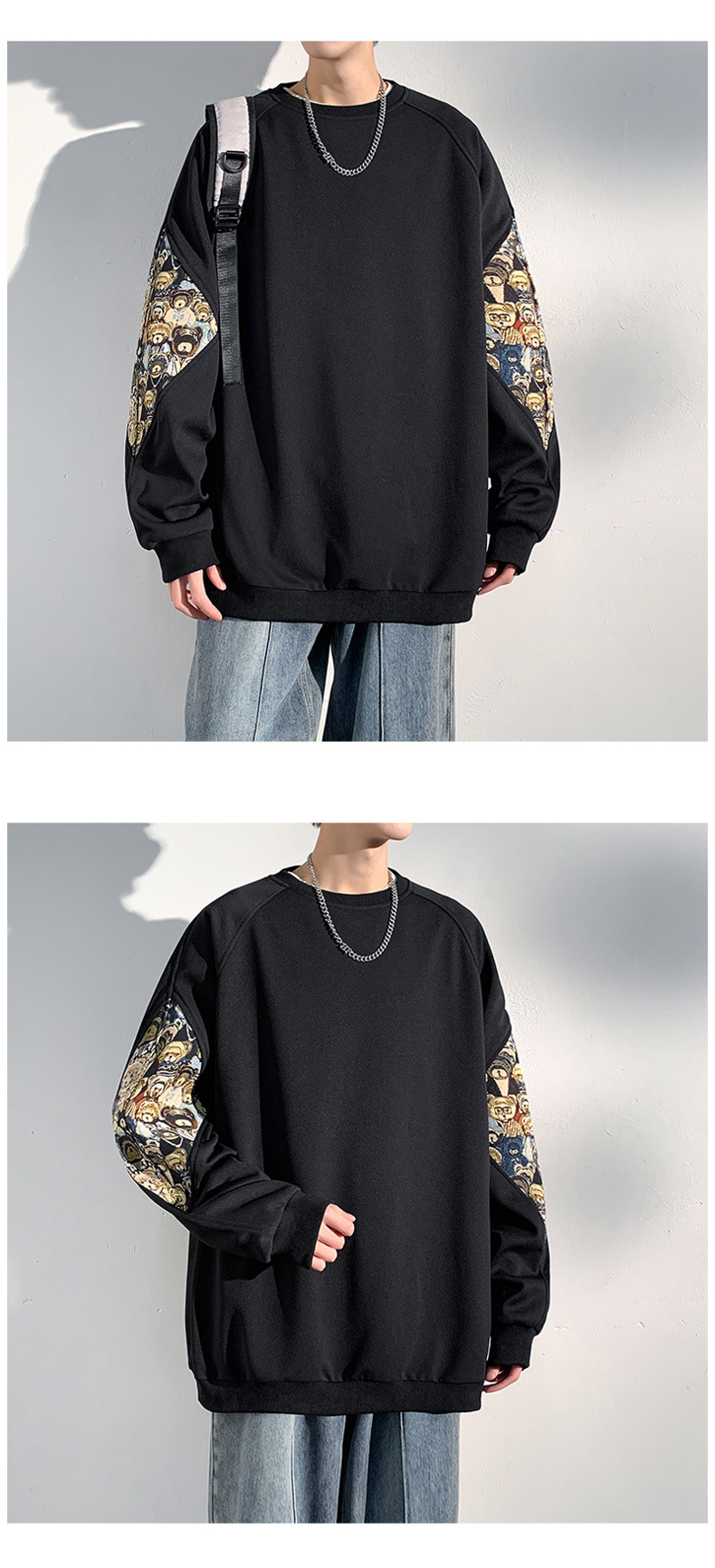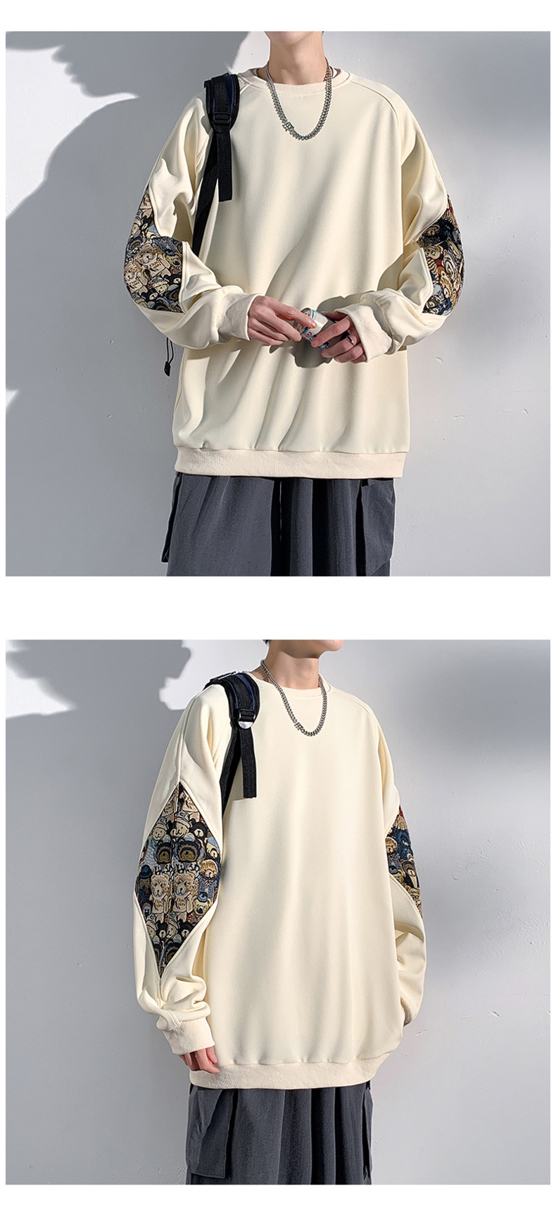 새로운 중국 스타일 베어 바느질 스웨트 남성 가을 트렌디 브랜드 전국 스타일 느슨한 파인애플 크루 넥 탑