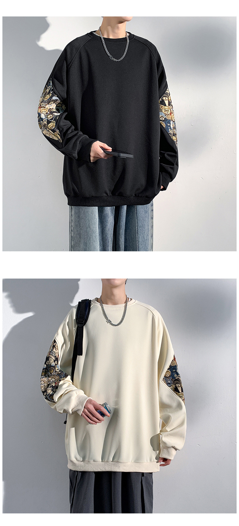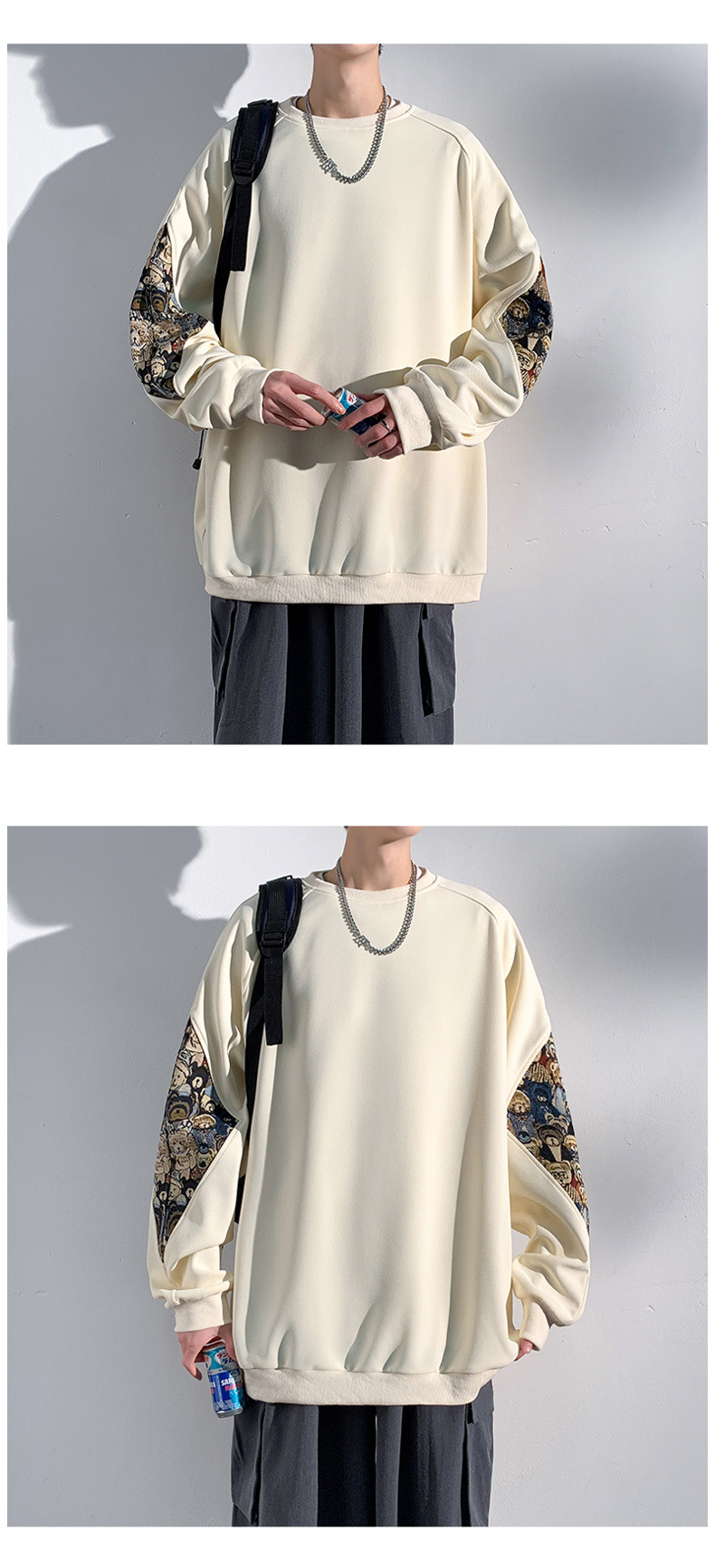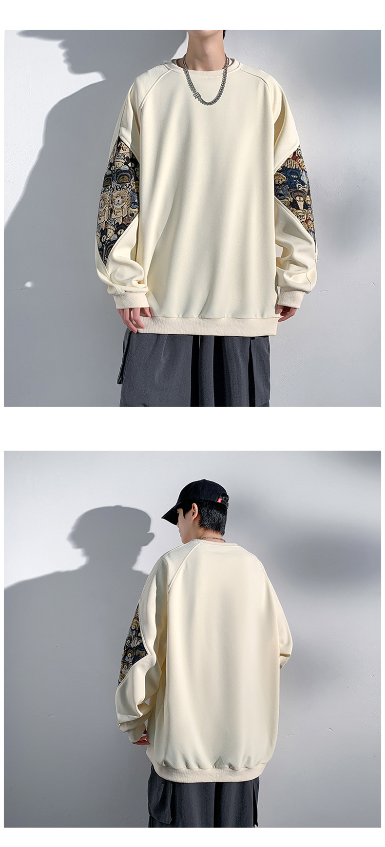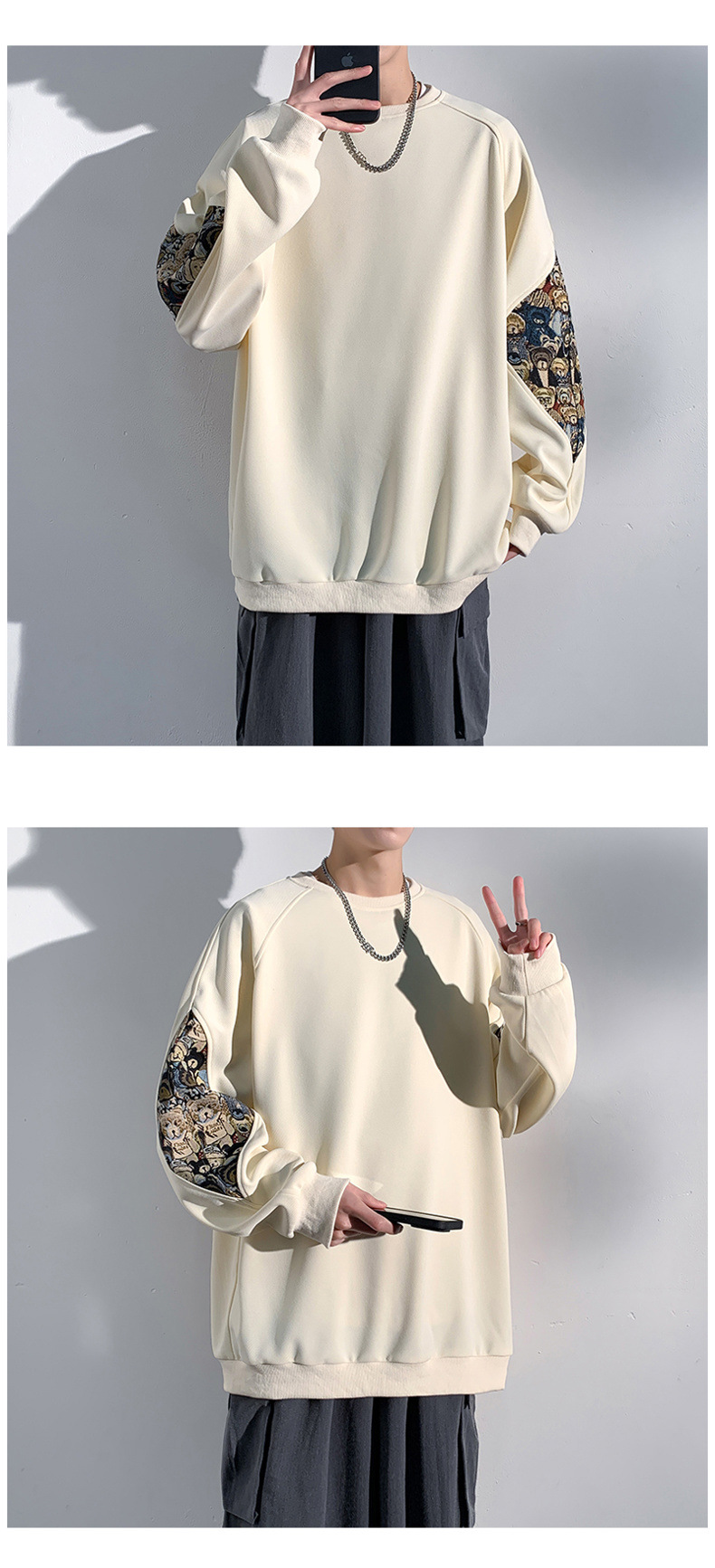 새로운 중국 스타일 베어 바느질 스웨트 남성 가을 트렌디 브랜드 전국 스타일 느슨한 파인애플 크루 넥 탑