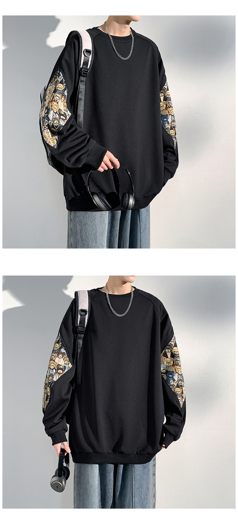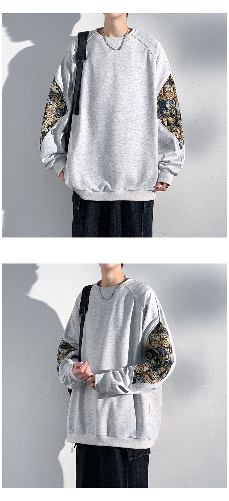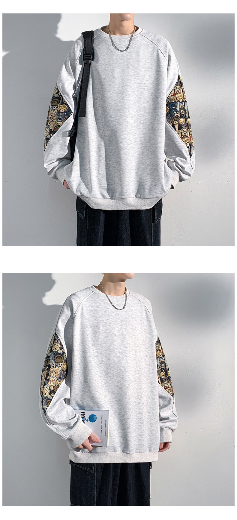 새로운 중국 스타일 베어 바느질 스웨트 남성 가을 트렌디 브랜드 전국 스타일 느슨한 파인애플 크루 넥 탑스토어 가기
