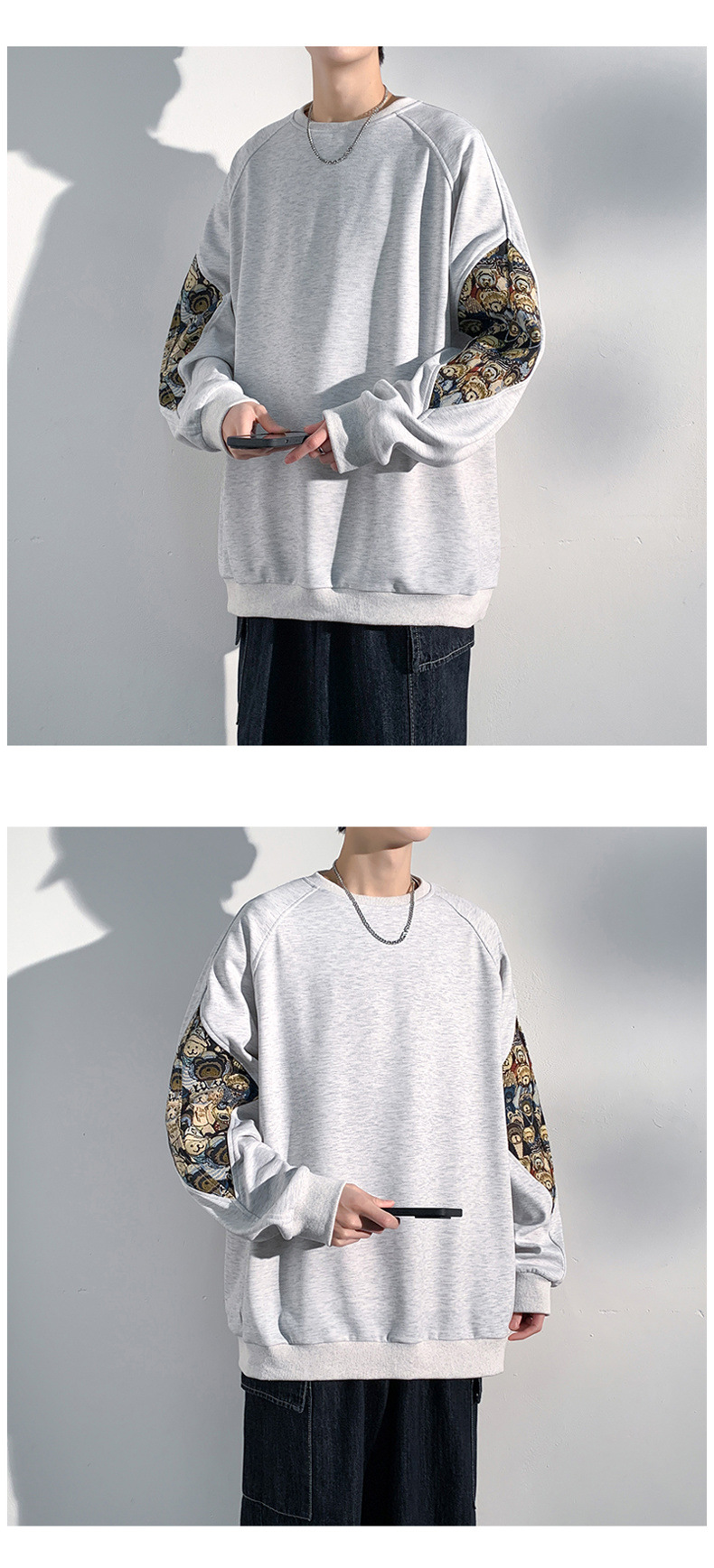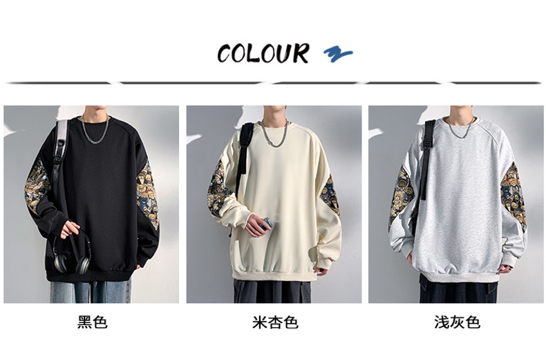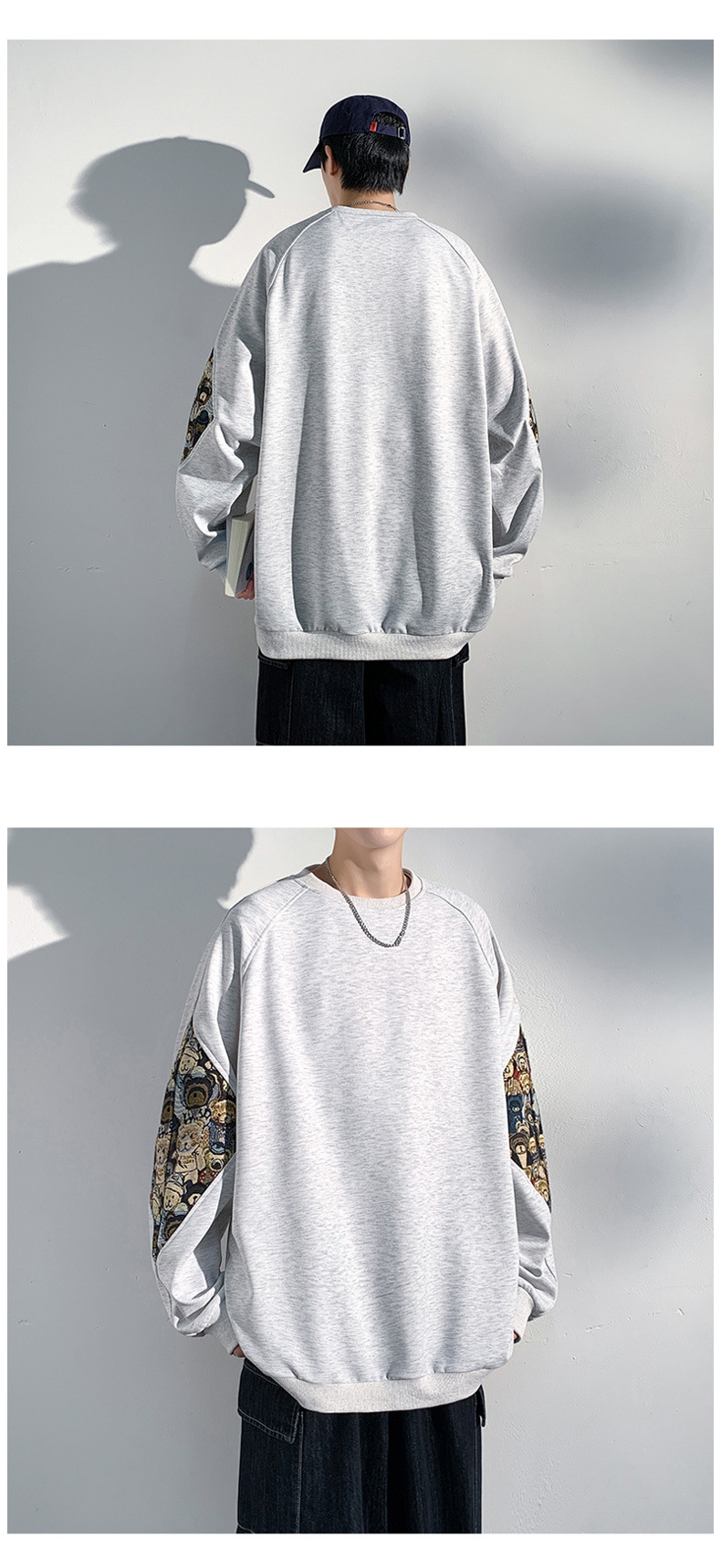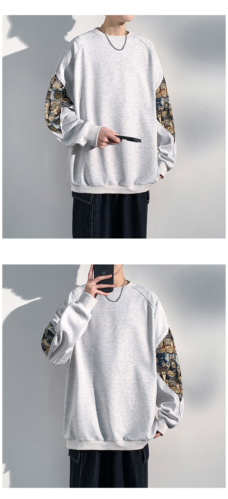 새로운 중국 스타일 베어 바느질 스웨트 남성 가을 트렌디 브랜드 전국 스타일 느슨한 파인애플 크루 넥 탑스토어 가기