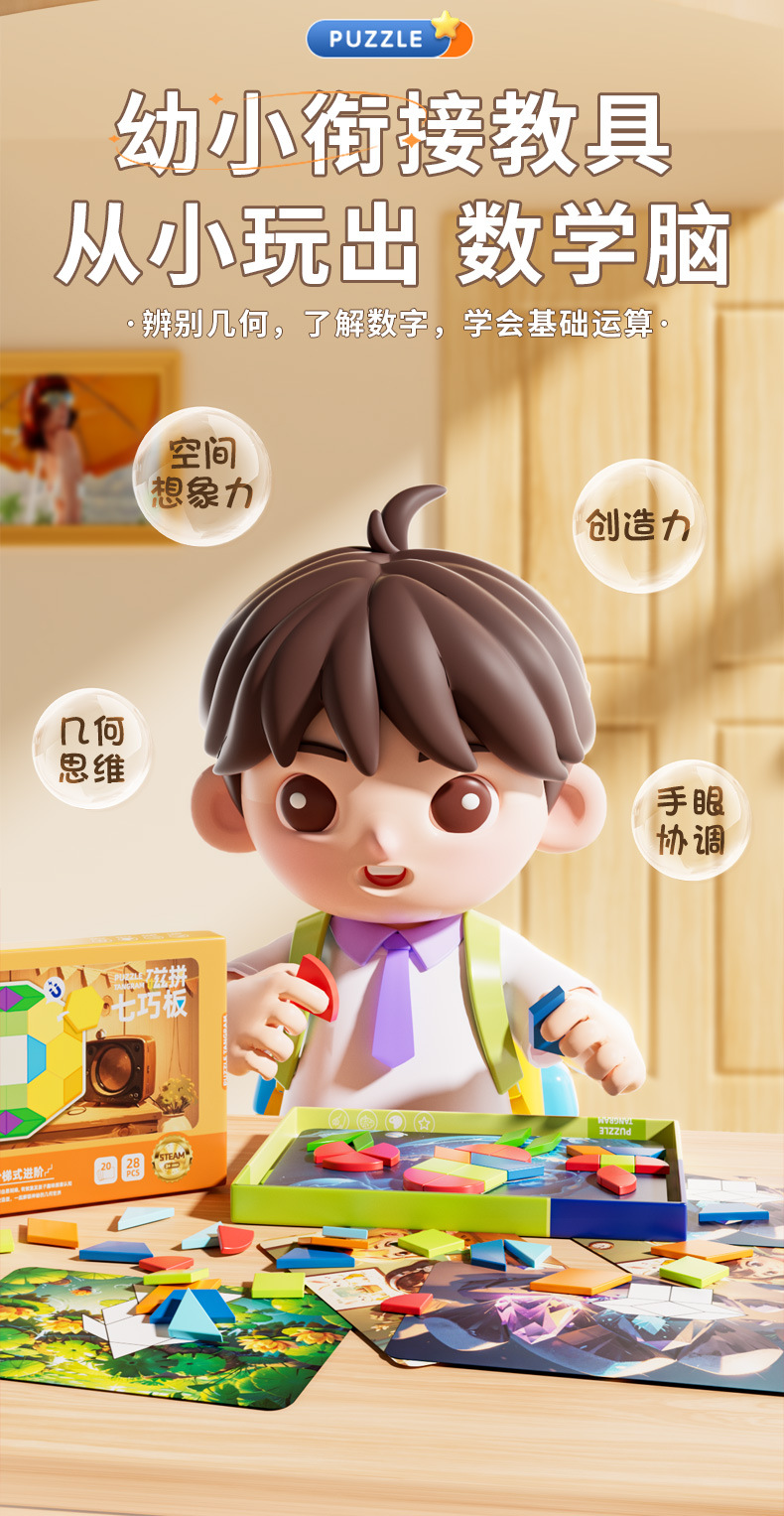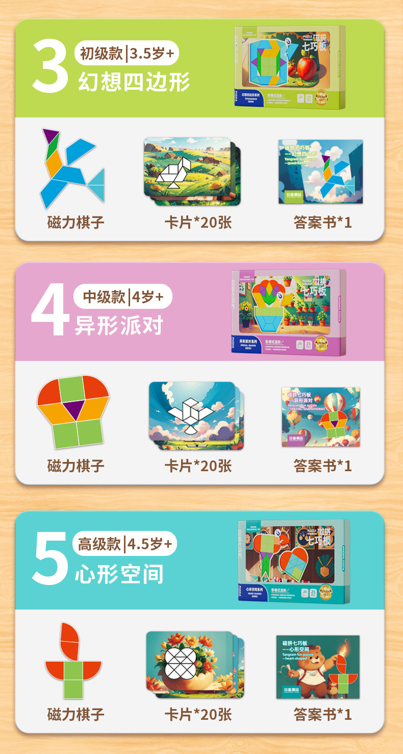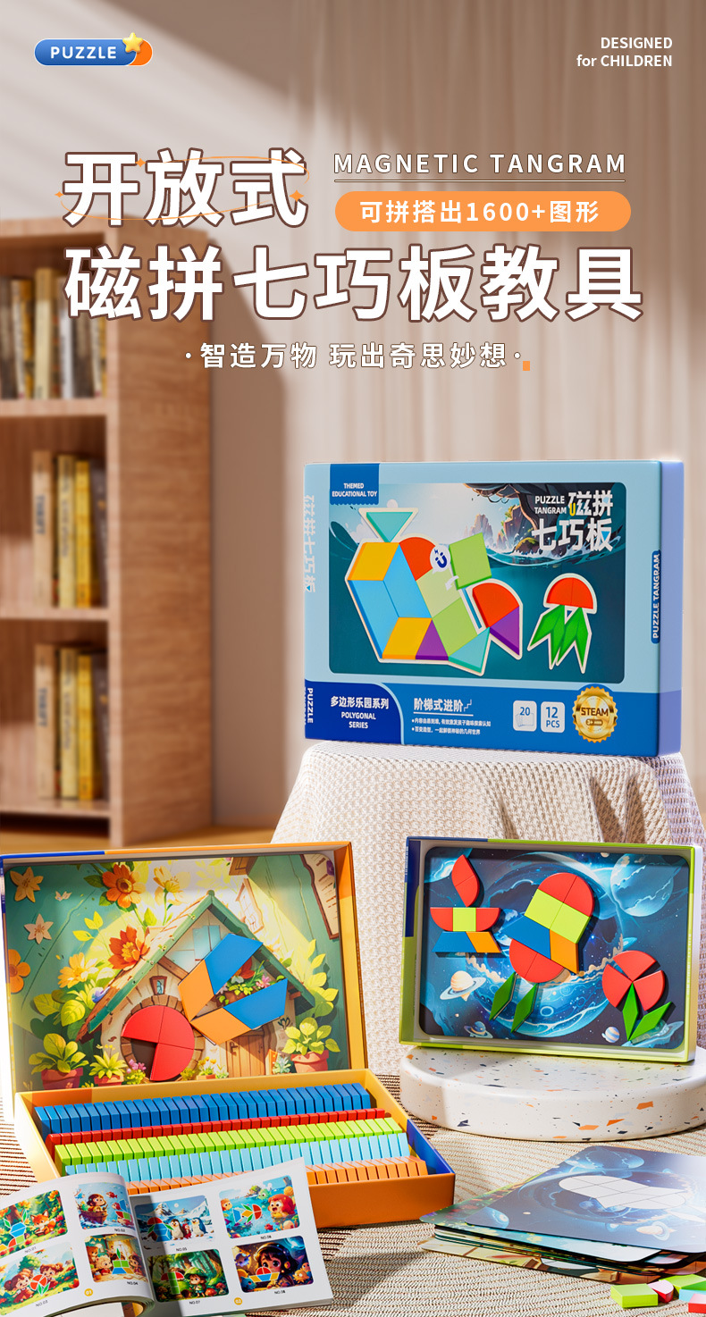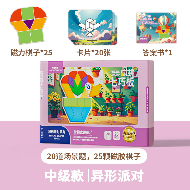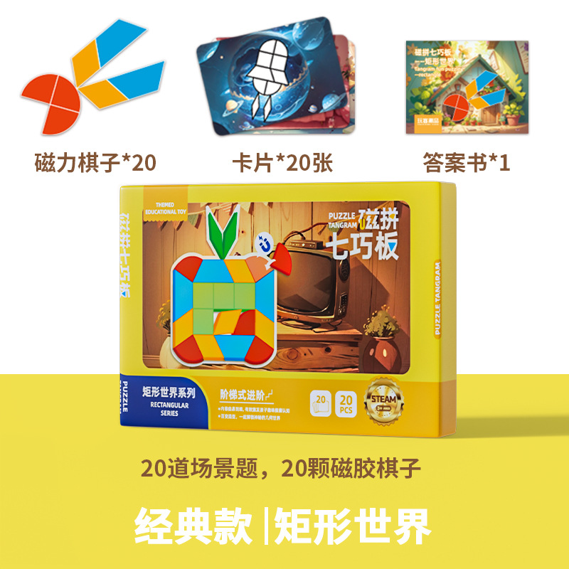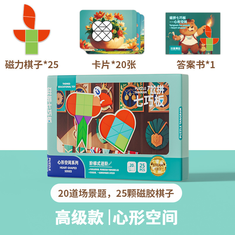 자기 탕람 논리 사고 기하학 퍼즐 고급 자기 흡입 탕람 교육 원조 3-6 세 조기 교육 장난감스토어 가기