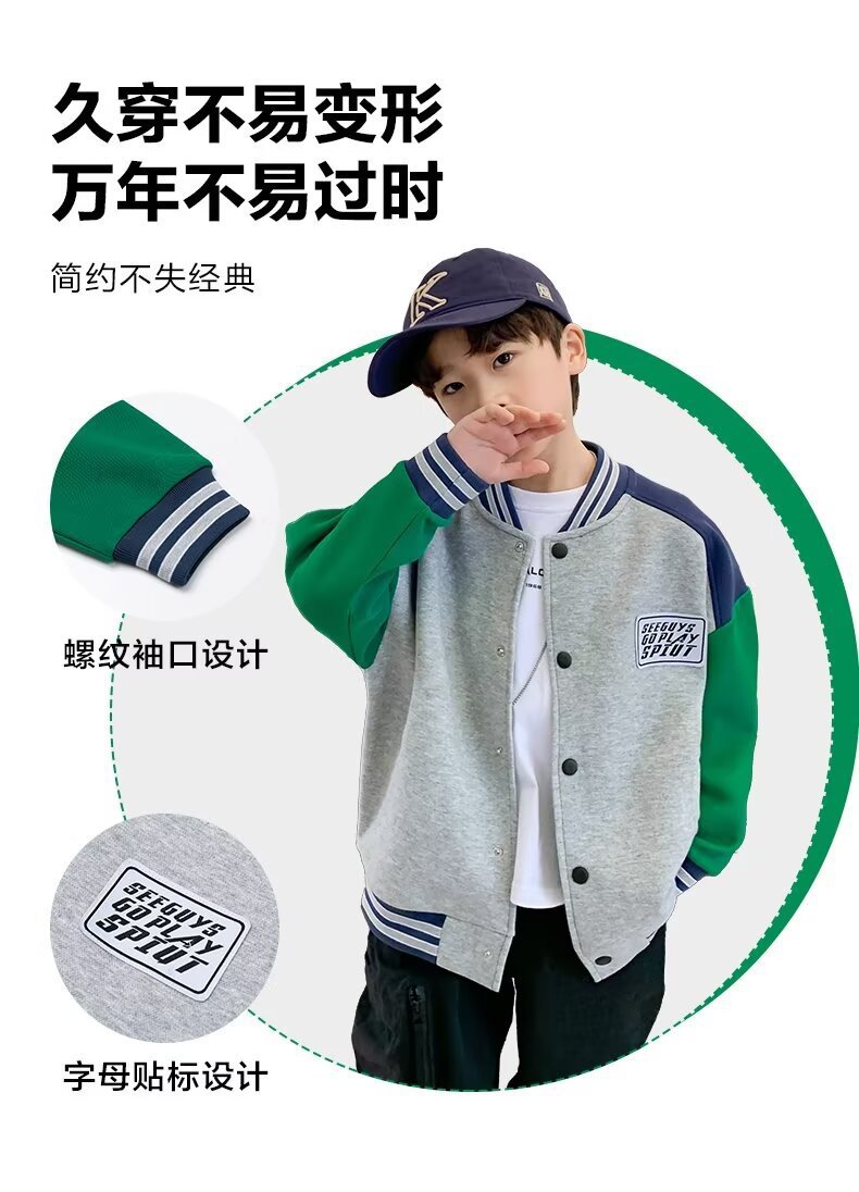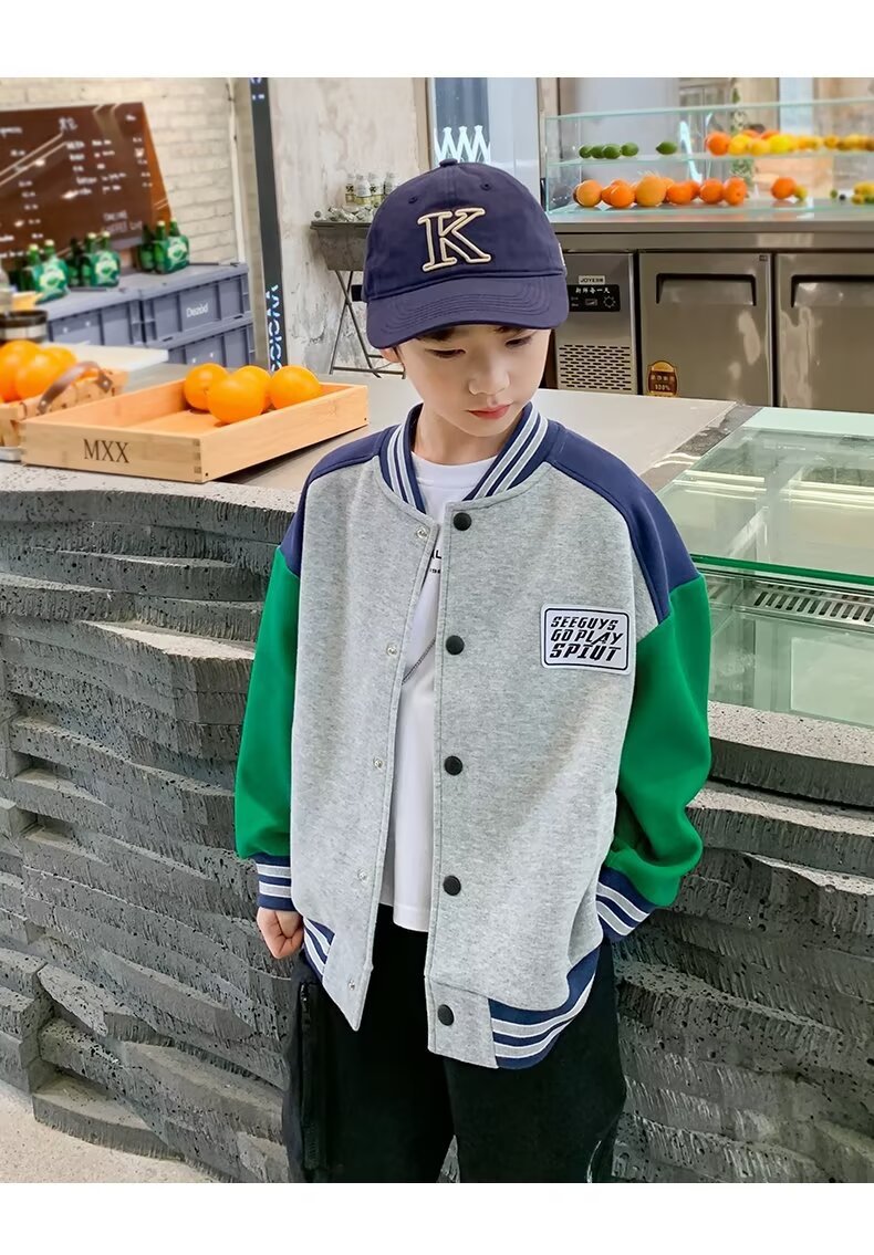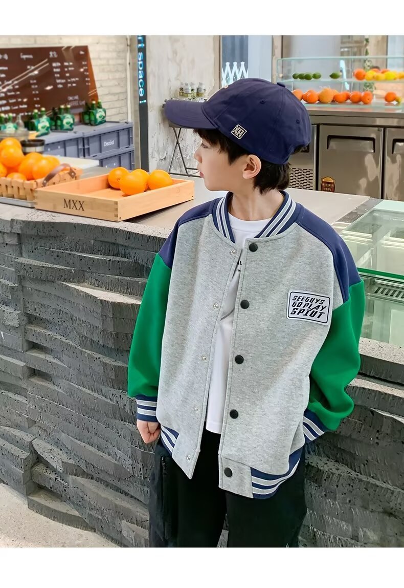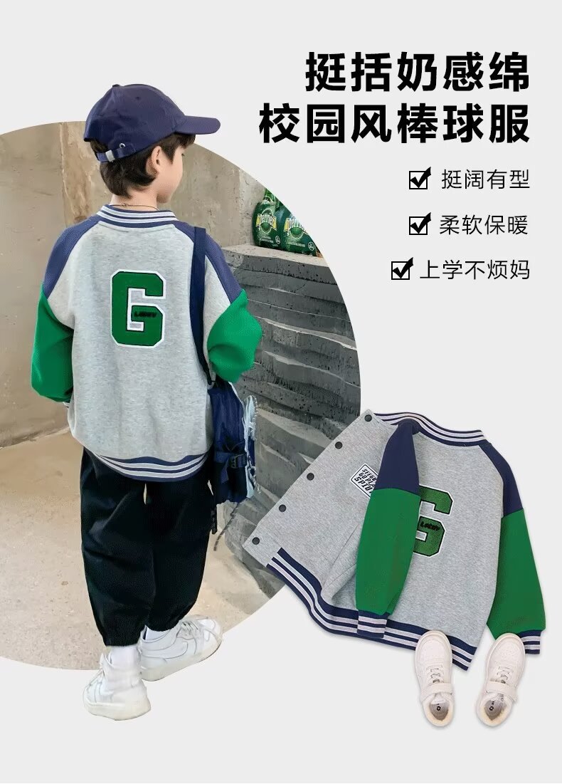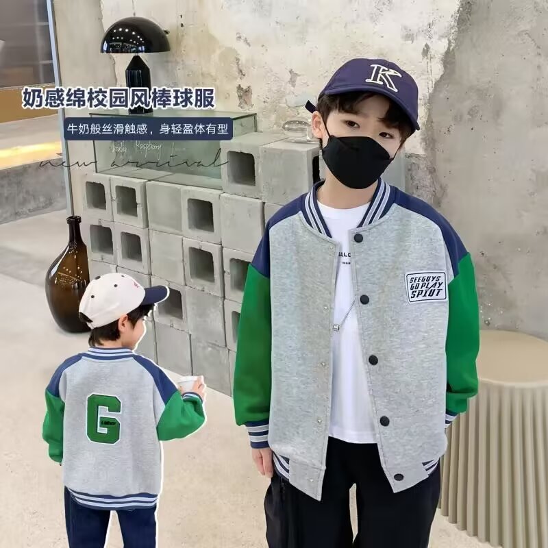 남자 코트 어린이 야구 세트 2024 가을 한국 스타일 새로운 잘 생긴 큰 소년 가을 재킷 탑스토어 가기