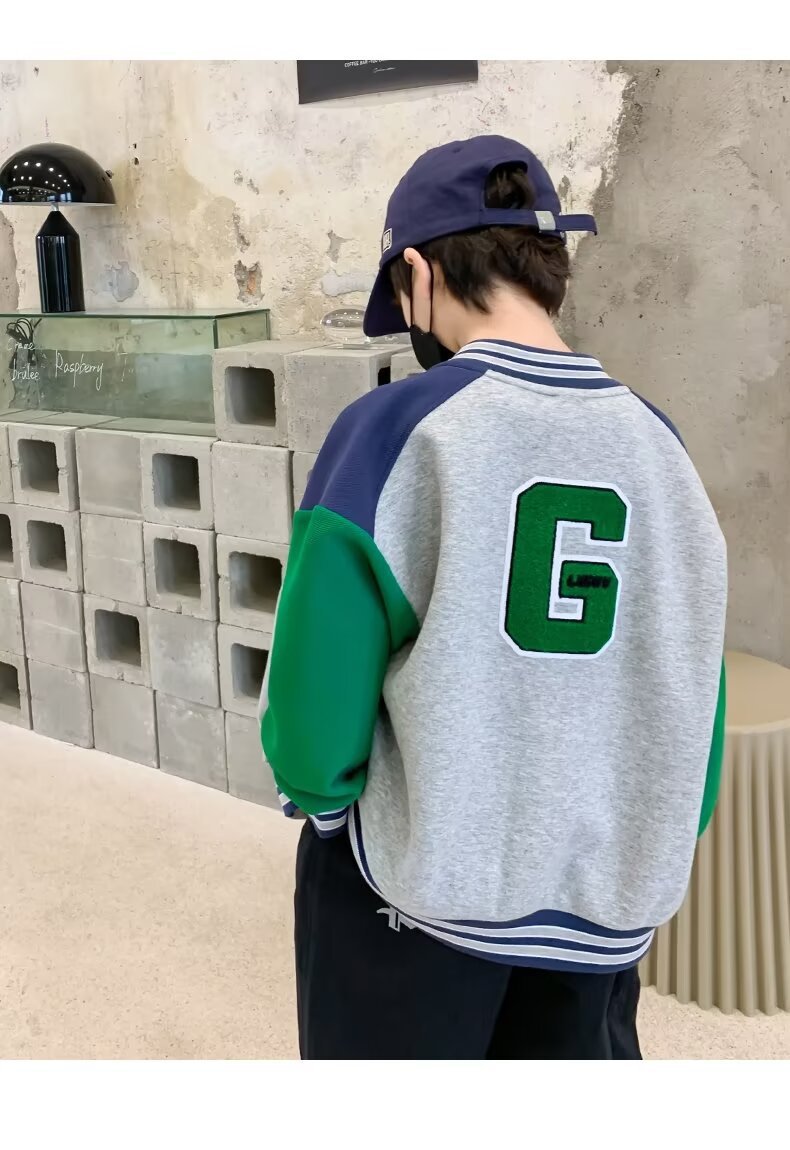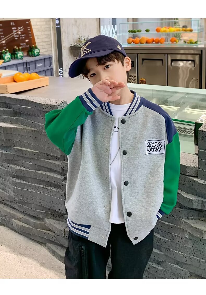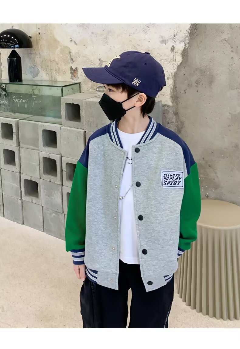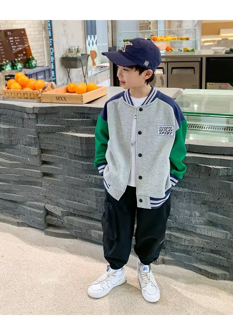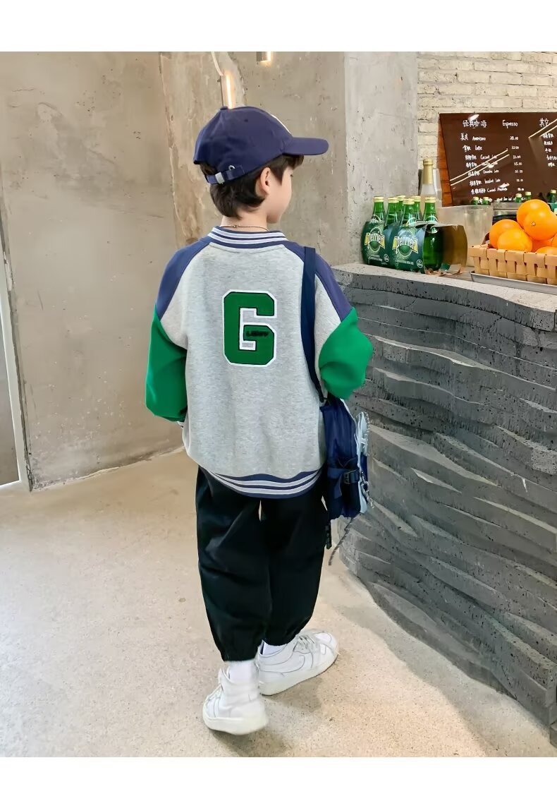 남자 코트 어린이 야구 세트 2024 가을 한국 스타일 새로운 잘 생긴 큰 소년 가을 재킷 탑스토어 가기