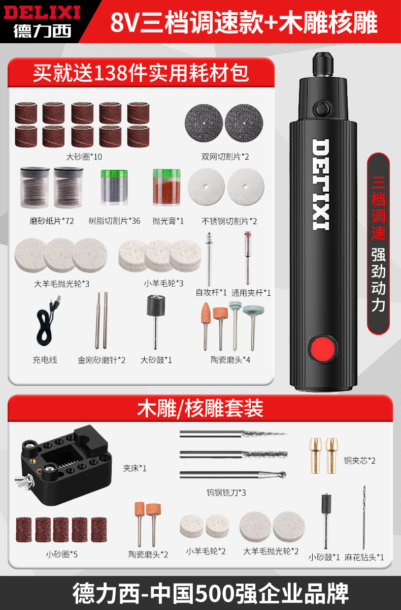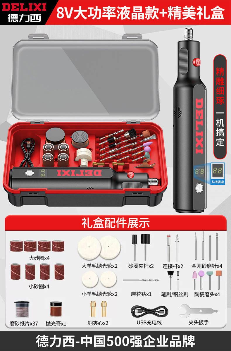 Delixi 전기 연삭 기계 작은 휴대용 연삭 기계 옥 나무 조각 연마 절단 조각 도구 작은 전기 드릴스토어 가기
