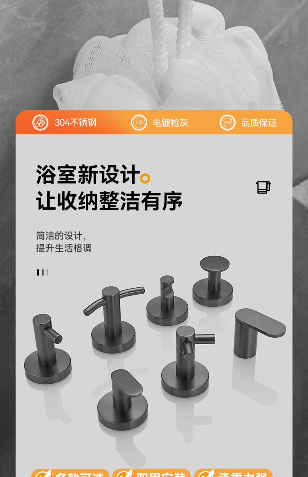 총 회색 비 천공 후크 304 스테인레스 스틸 코트 후크 욕실 열 후크 욕실 싱글 후크 호텔 엔지니어링 코트 후크