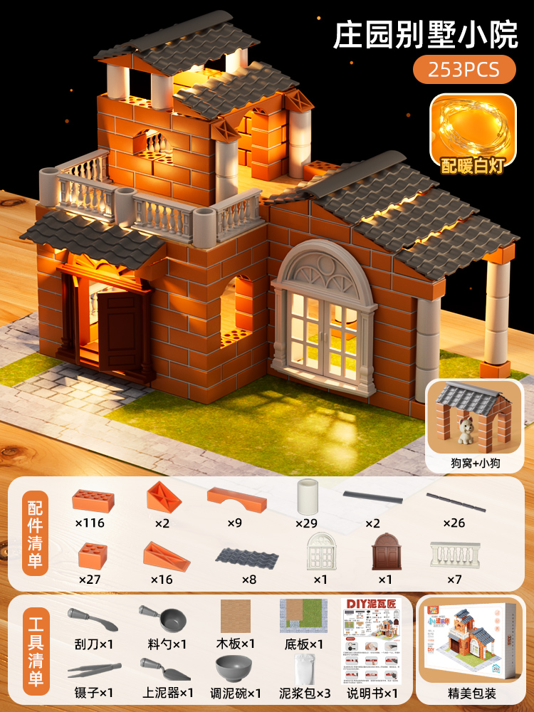 리틀 메이슨, 집 벽 건물 장난감 DIY 캐빈 어린이 소년과 소녀 5 빌딩 모델 미니 빌라