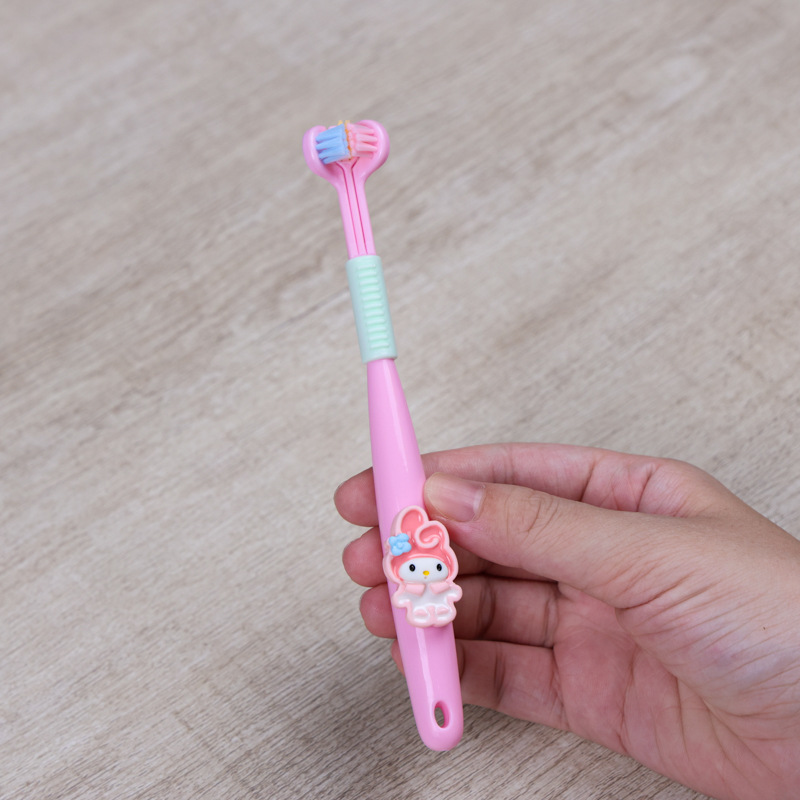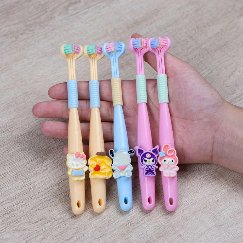 3 면 칫솔 산리오 귀여운 어린이 칫솔 6 ~ 12 세 남학생과 여학생 아기를위한 부드러운 머리 변경