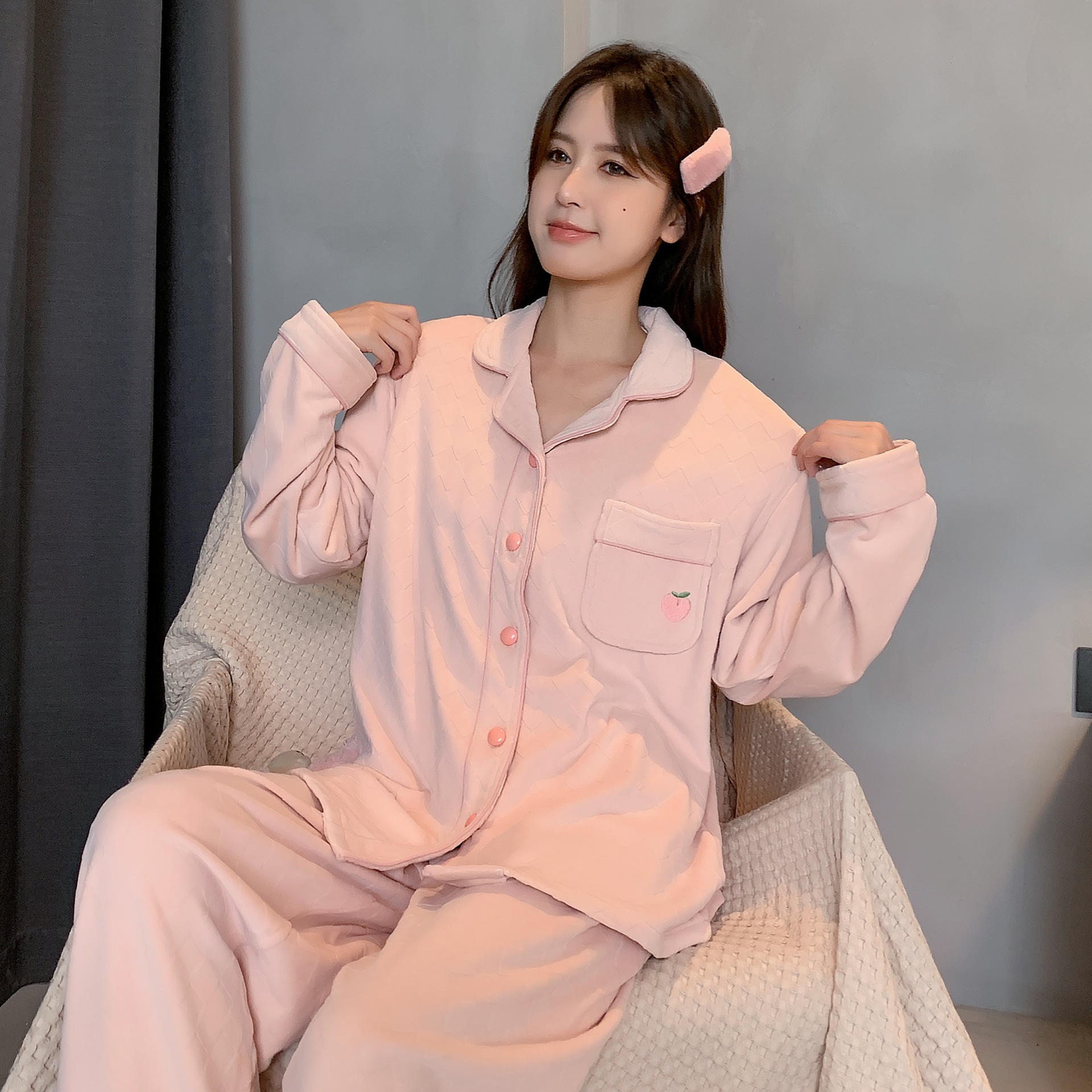 가을과 겨울 커플 잠옷 여성의 새로운 기모 섬 벨벳 따뜻한 집 옷 세트 달콤한 겉옷 남성용스토어 가기