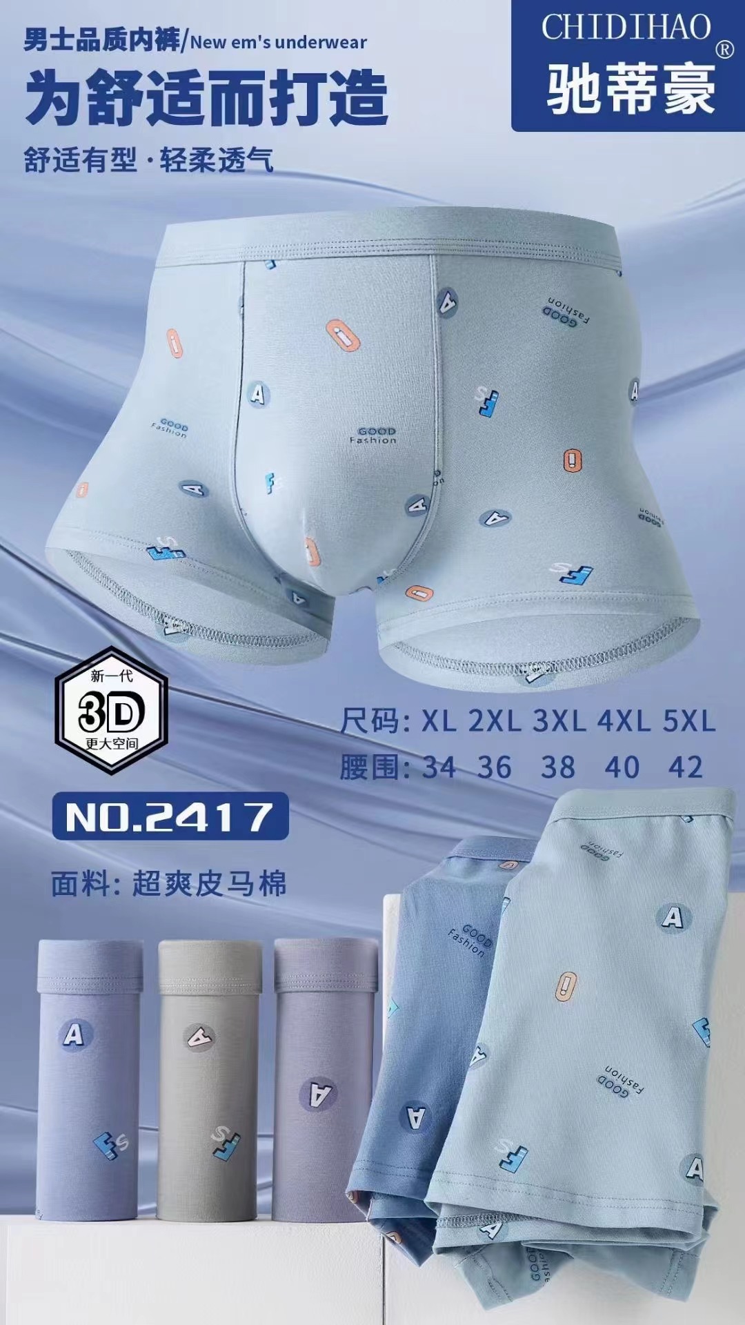 치 디 하오 남자 복서 팬티 슈퍼 쿨 포주 코튼 3D 인쇄 복서 바지 솔리드 컬러 소프트 패션 코튼 모스토어 가기