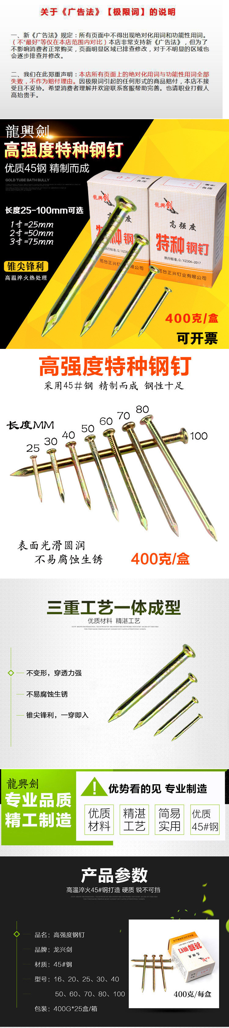 Longtai Jian 특수 강철 네일 시멘트 네일 높은 경도 노란 벽 네일 벽 그림 네일 금속 네일 박스 네일 무료 배송