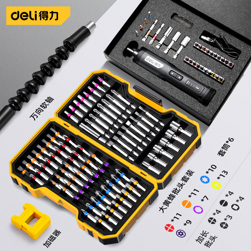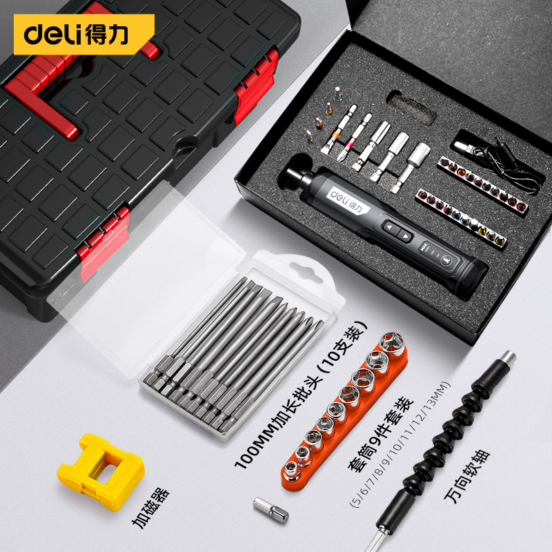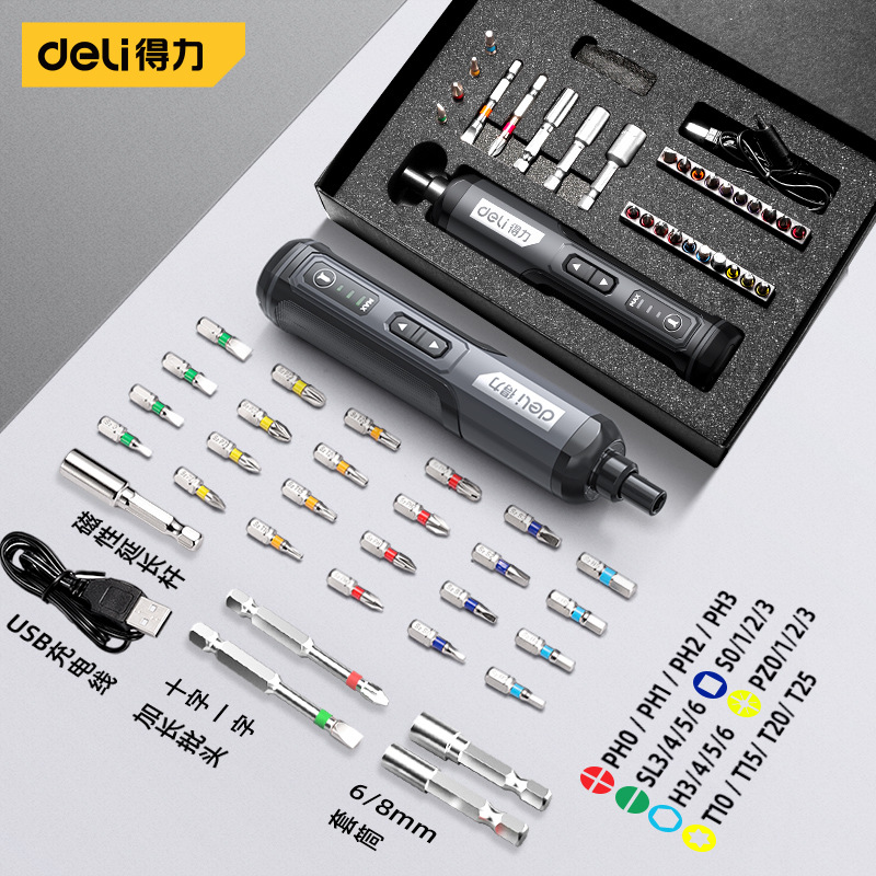 델리 전기 드라이버 충전식 가정용 스크루 드라이버 작은 다기능 전기 배치 리튬 전기 드릴 도구 세트