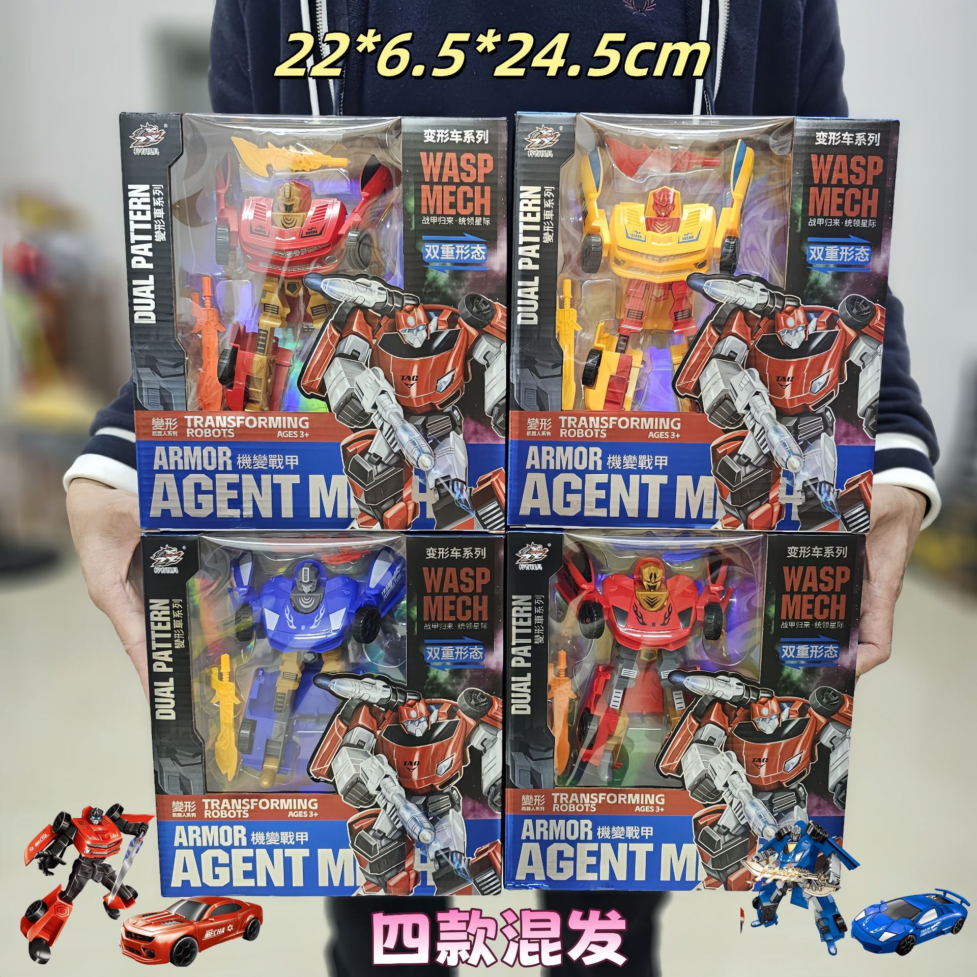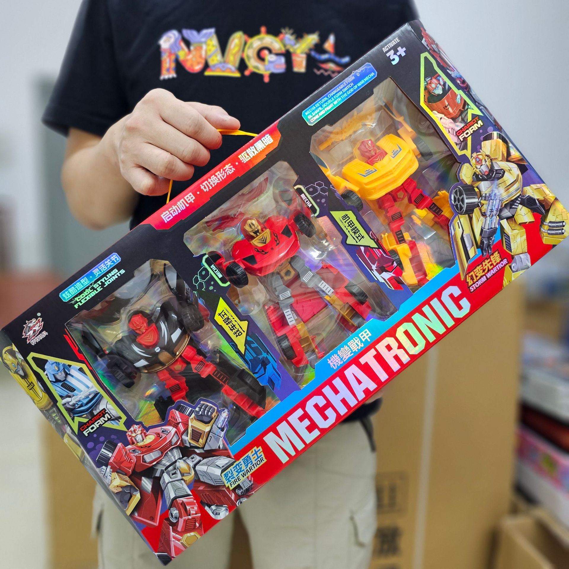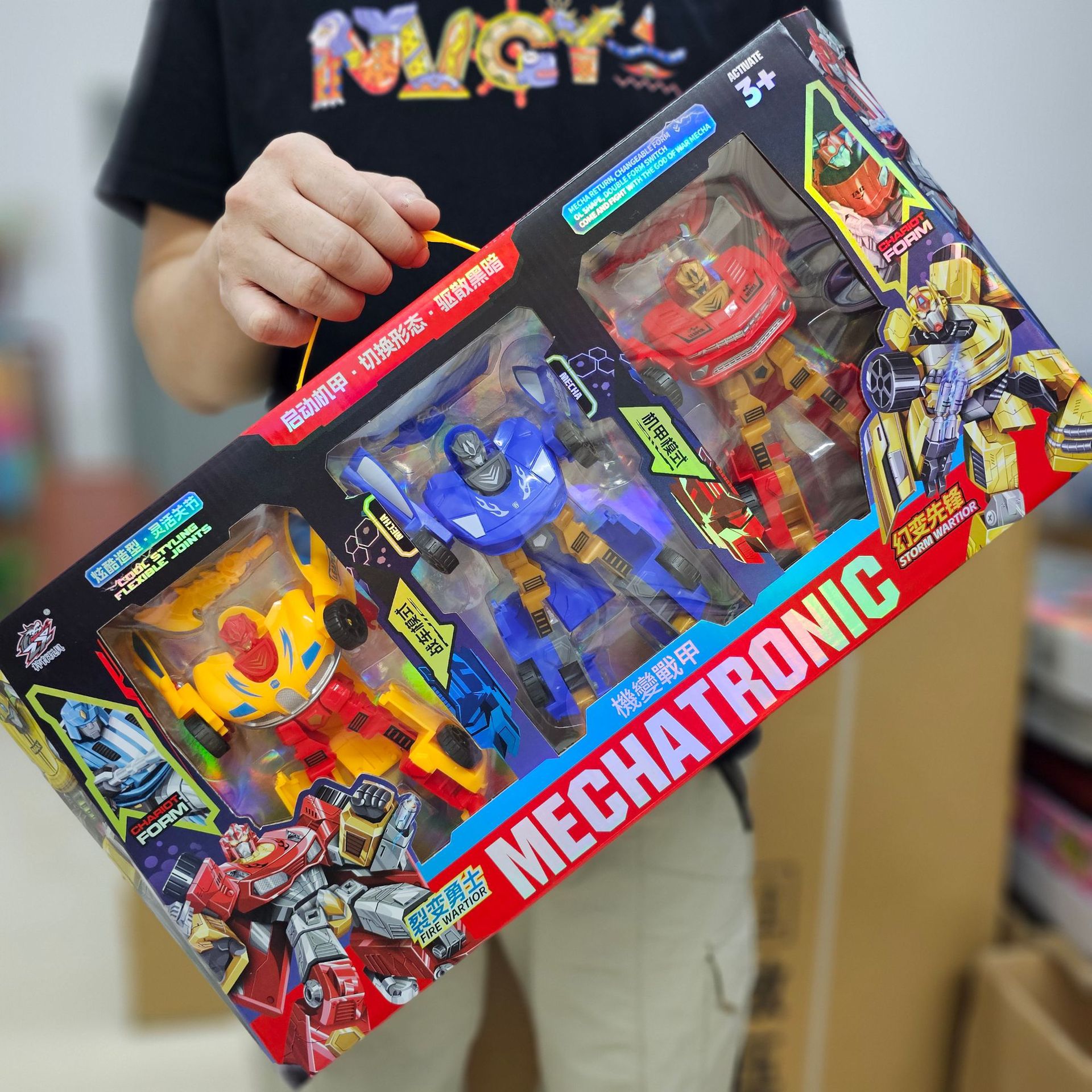 소년의 변형 된 갑옷 변형 된 오토봇 3 개의 금 및 실버 카드 선물 상자 어린이 로봇 모델 장난감 선물스토어 가기
