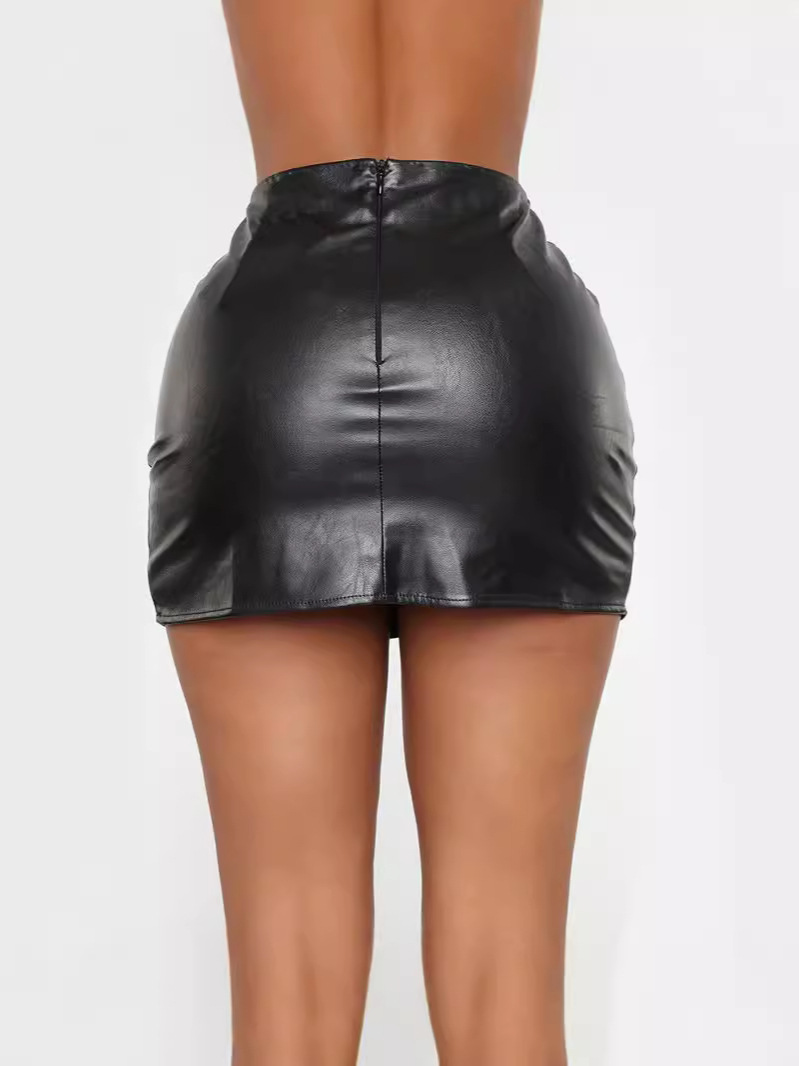 알리익스프레스 유럽 및 미국 여성용 하이웨이스트 힙허깅 숏 스커트 PU 가죽 지퍼 블랙 슬릿 가죽 스커트 하이웨이스트 힙허깅 가죽 스커트