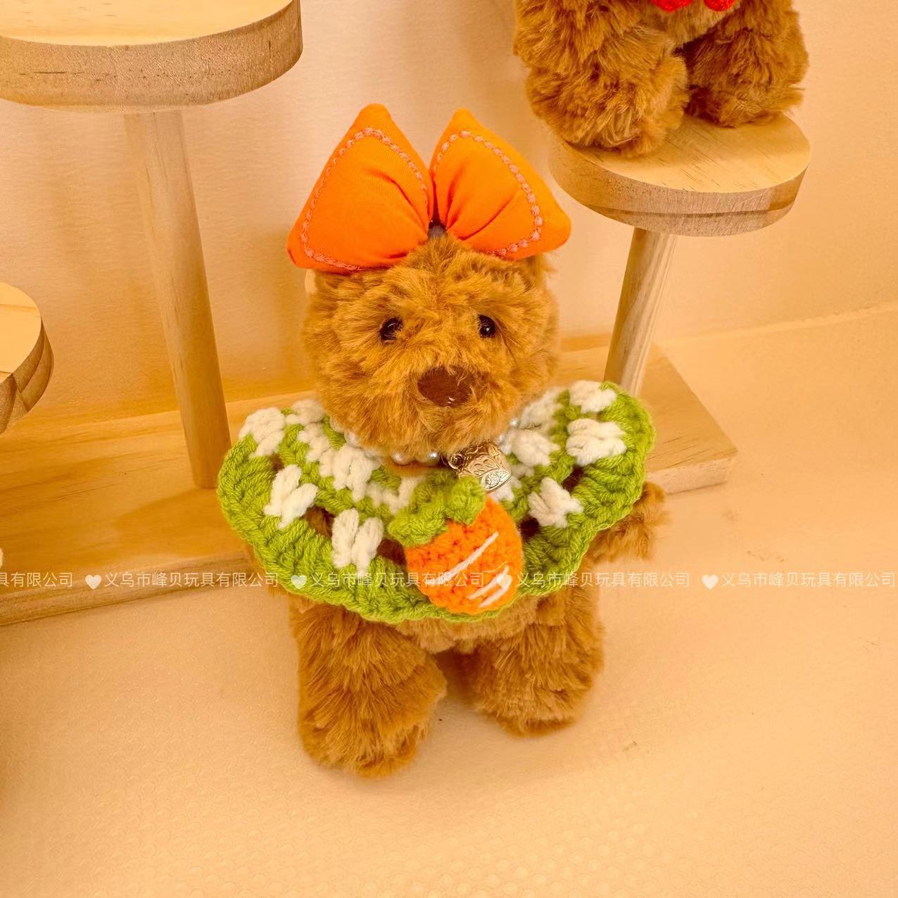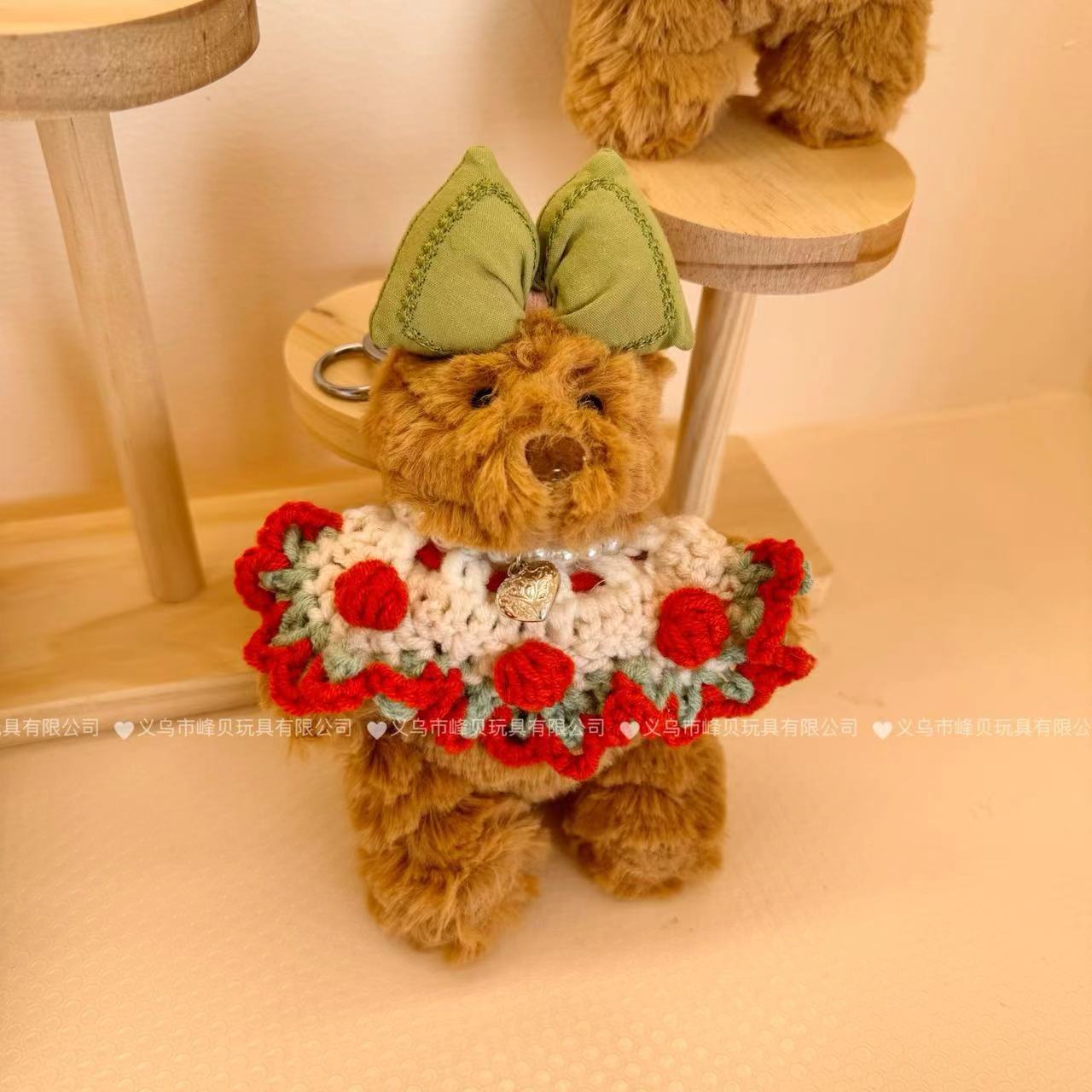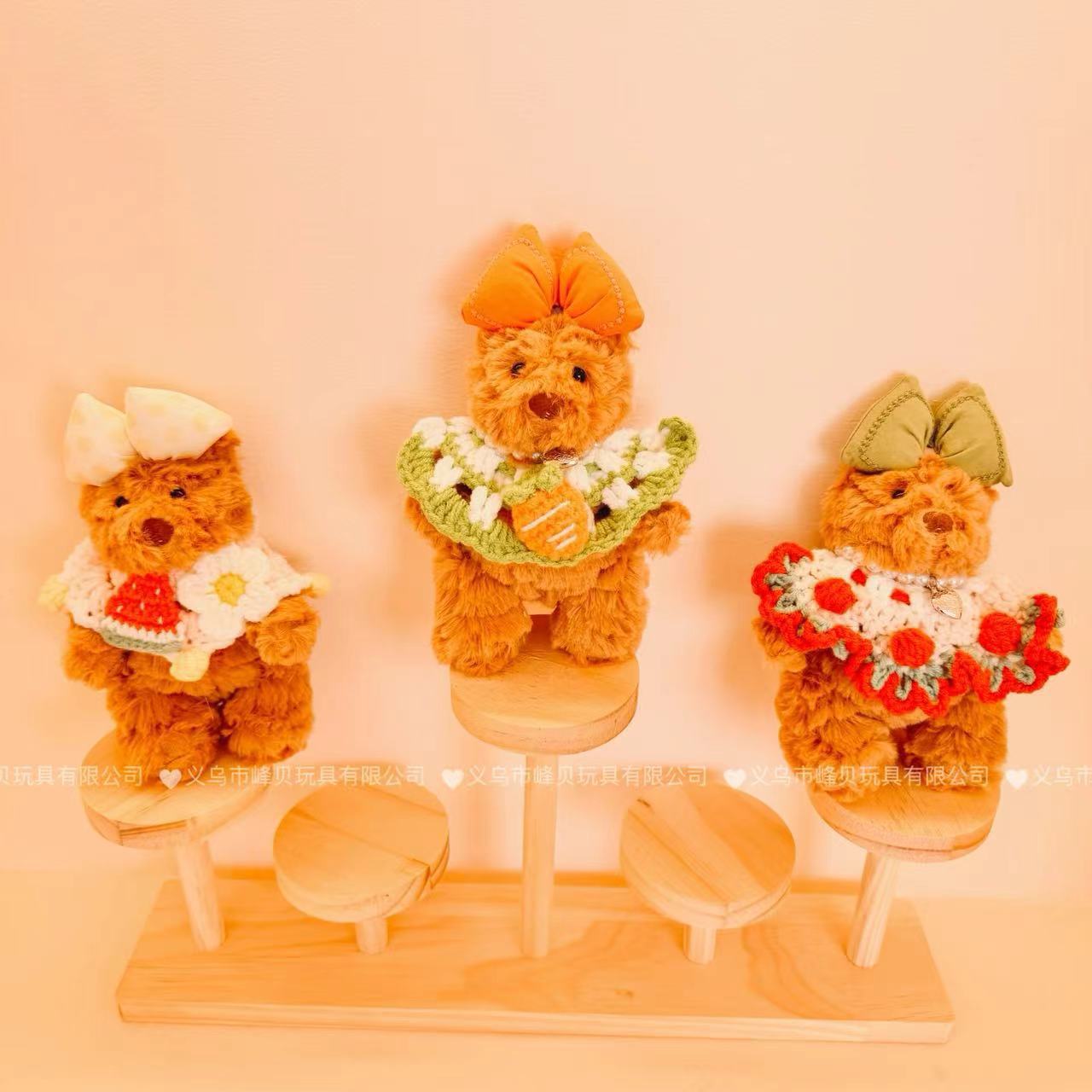 슈퍼 귀여운 바르셀로나 다크 브라운 베어 크로스 바디 니트 스커트 봉제 장난감 키 체인 펜던트 가방 매달려 장식품스토어 가기