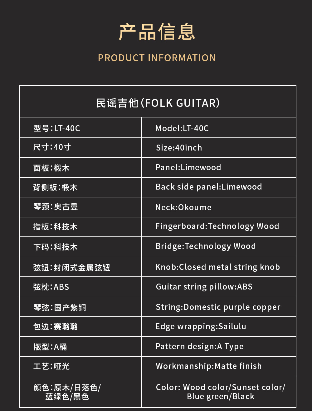 초보자용 무광 통원목 포크 기타 성인용 악기 기타스토어 가기