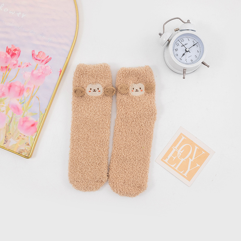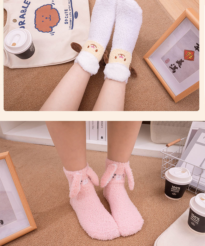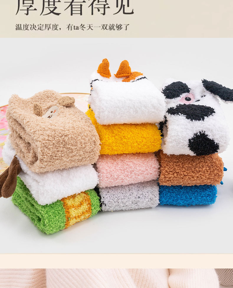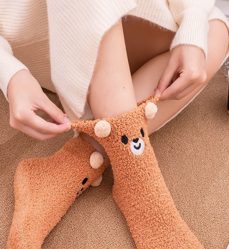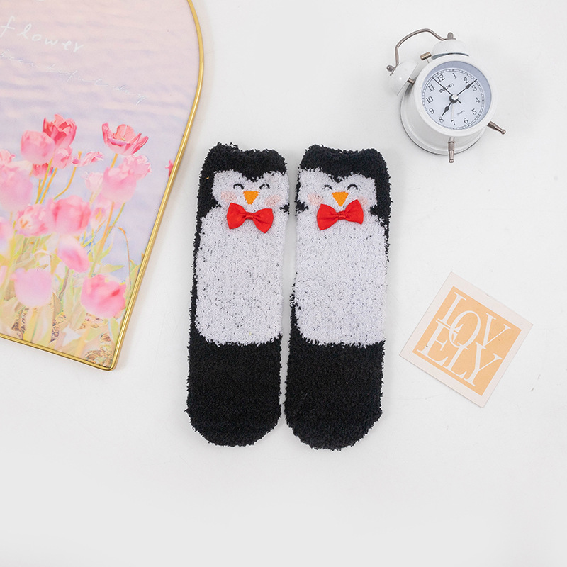 새로운 털이 빠지지 않는 산호 벨벳 여성 양말, 어린이 만화 크리스마스 양말, 두꺼운 미끄럼 방지 수면 양말, 바닥 양말, 해외 직구스토어 가기