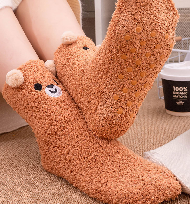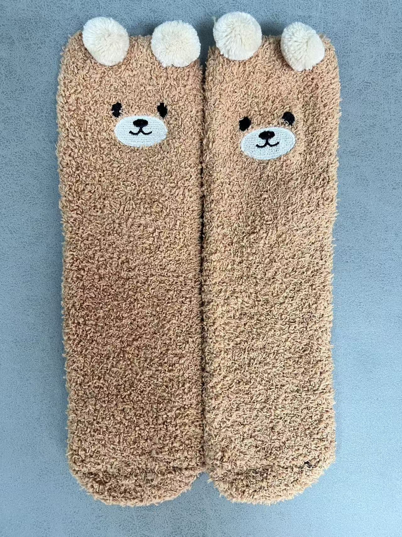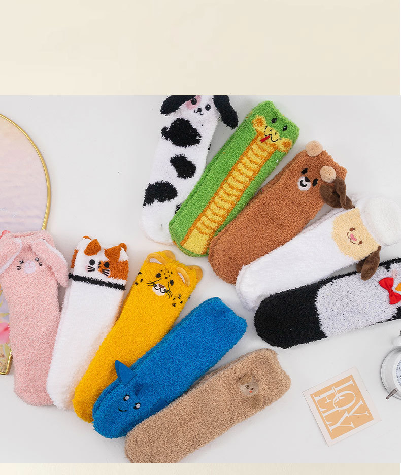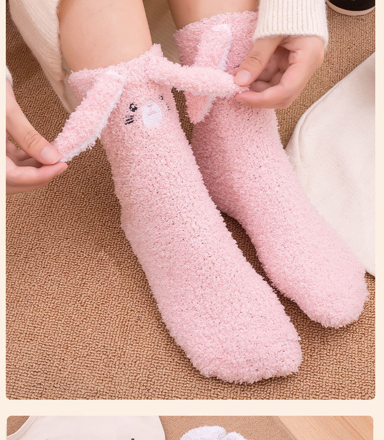 새로운 털이 빠지지 않는 산호 벨벳 여성 양말, 어린이 만화 크리스마스 양말, 두꺼운 미끄럼 방지 수면 양말, 바닥 양말, 해외 직구스토어 가기