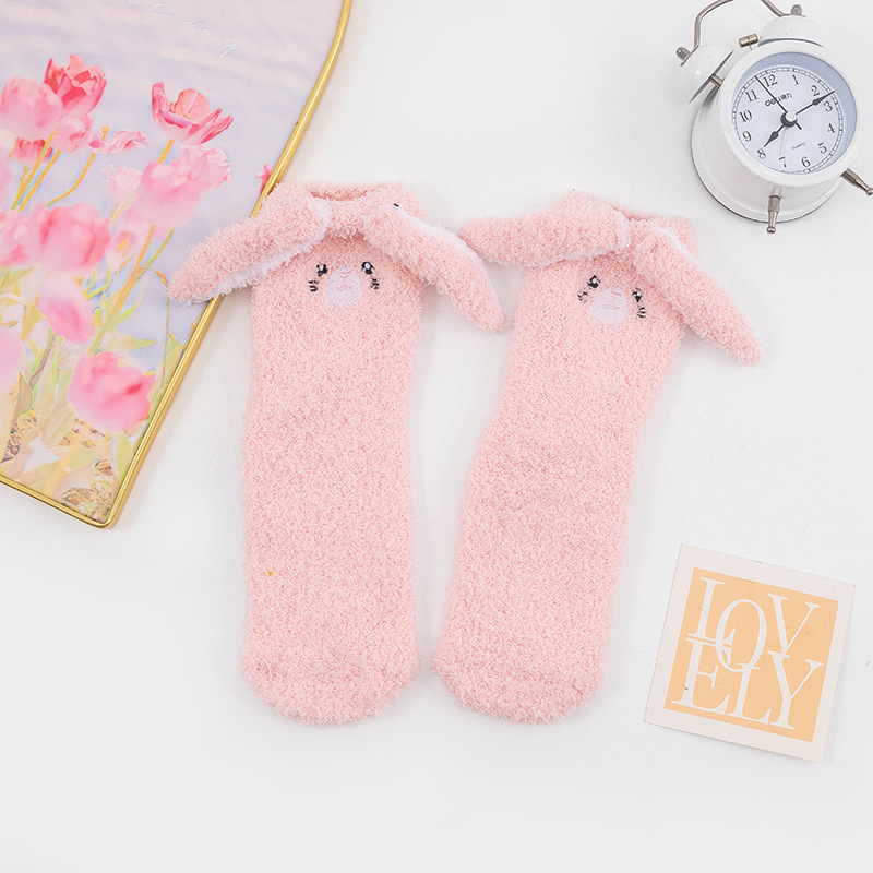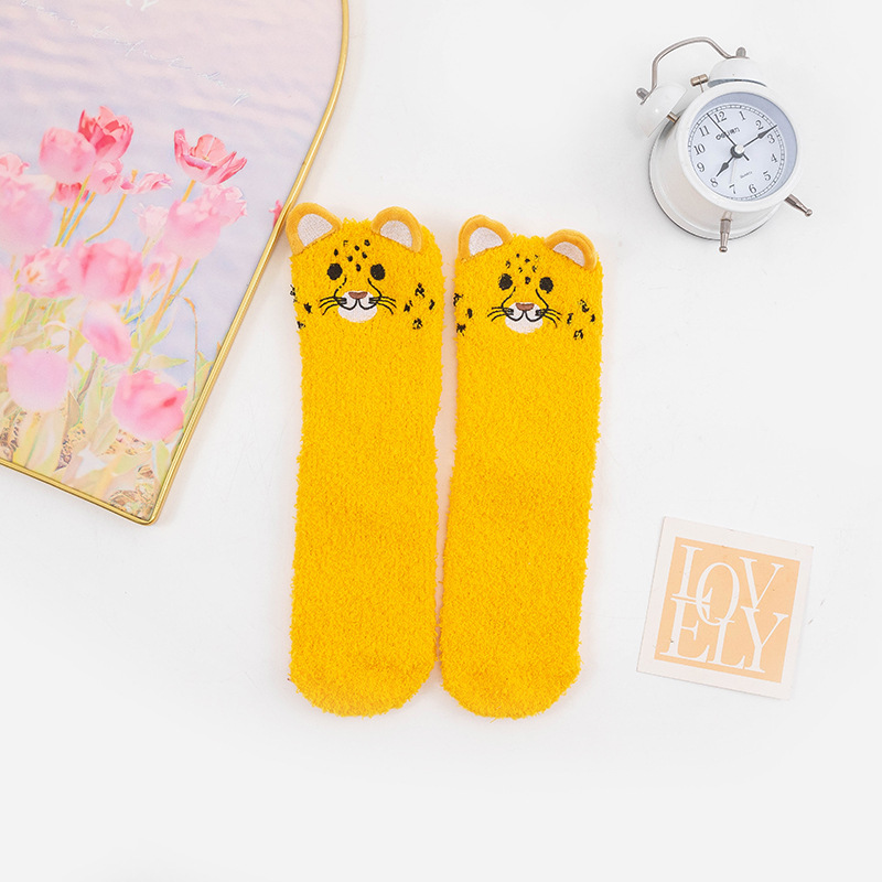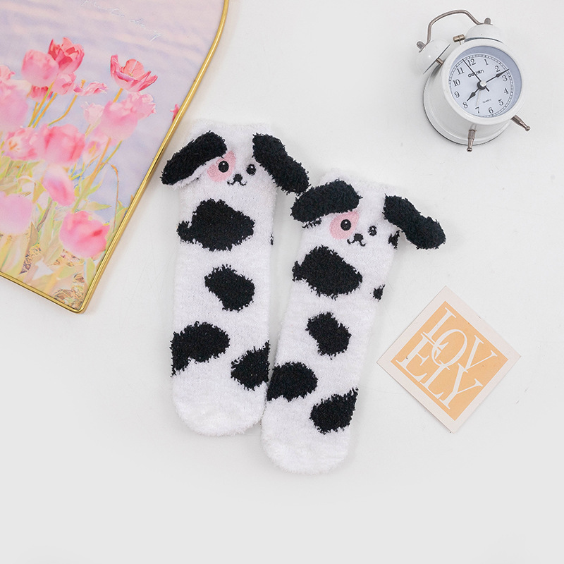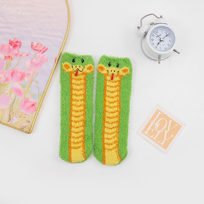 새로운 털이 빠지지 않는 산호 벨벳 여성 양말, 어린이 만화 크리스마스 양말, 두꺼운 미끄럼 방지 수면 양말, 바닥 양말, 해외 직구