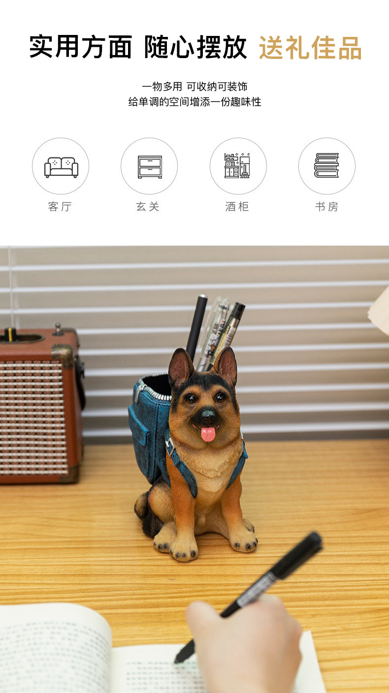 국경 간 독일 양치기 펜 컨테이너 사무실 데스크탑 패션 문구 저장 조각 장식품 새로운 수지 공예 강아지스토어 가기