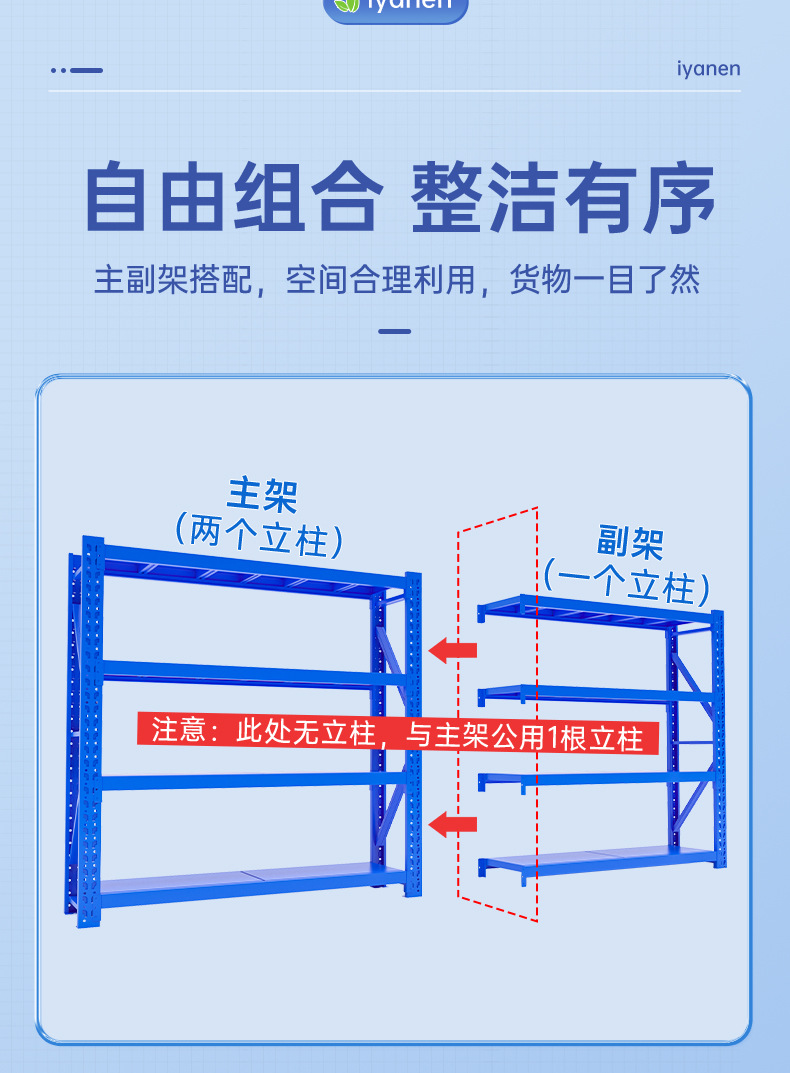 • 흰색 4겹 150*50*200-중형 메인 프레임/단층 350kg