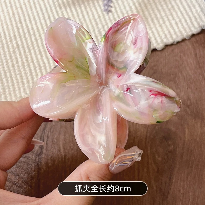 프랑스 레트로 도파민 스니핑 꽃 그랩 클립 하이 엔드 패션 머리 머리 상어 클립 헤어 액세서리 반 묶음