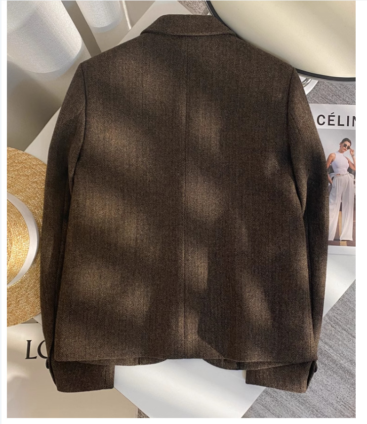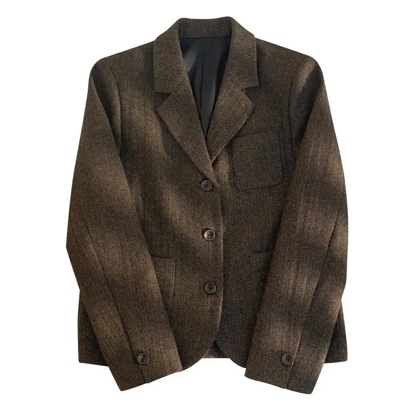 다크 브라운 헤링본 모직 세트 재킷 여성 가을 고급 디자인 센스 틈새 거리 우아한 작은 세트스토어 가기
