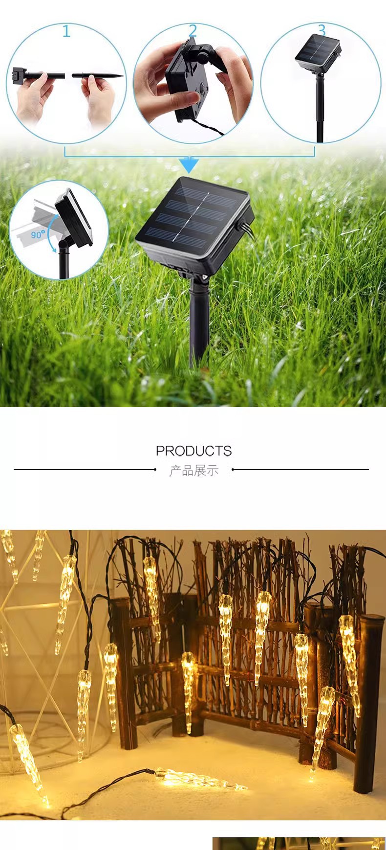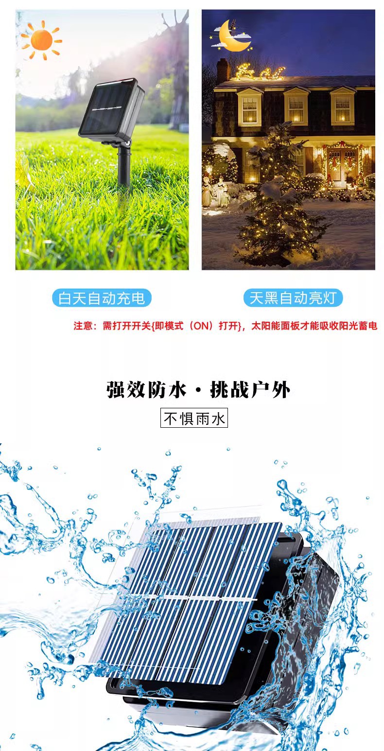 국경 전용 LED 태양 아이스 콘 스트링 램프 배선 무료 야외 방수 크리스마스 휴가 안뜰 정원 장식