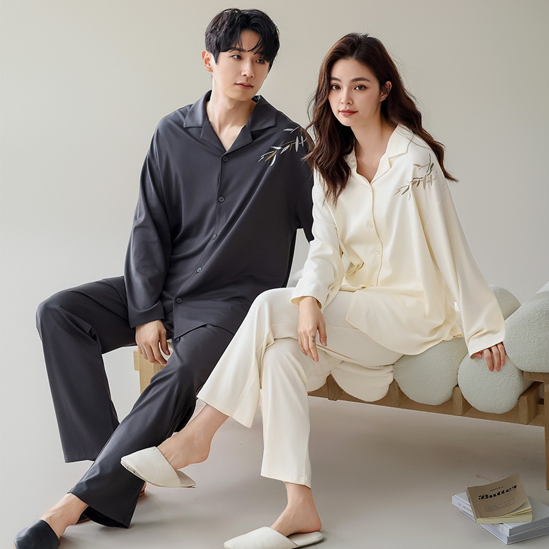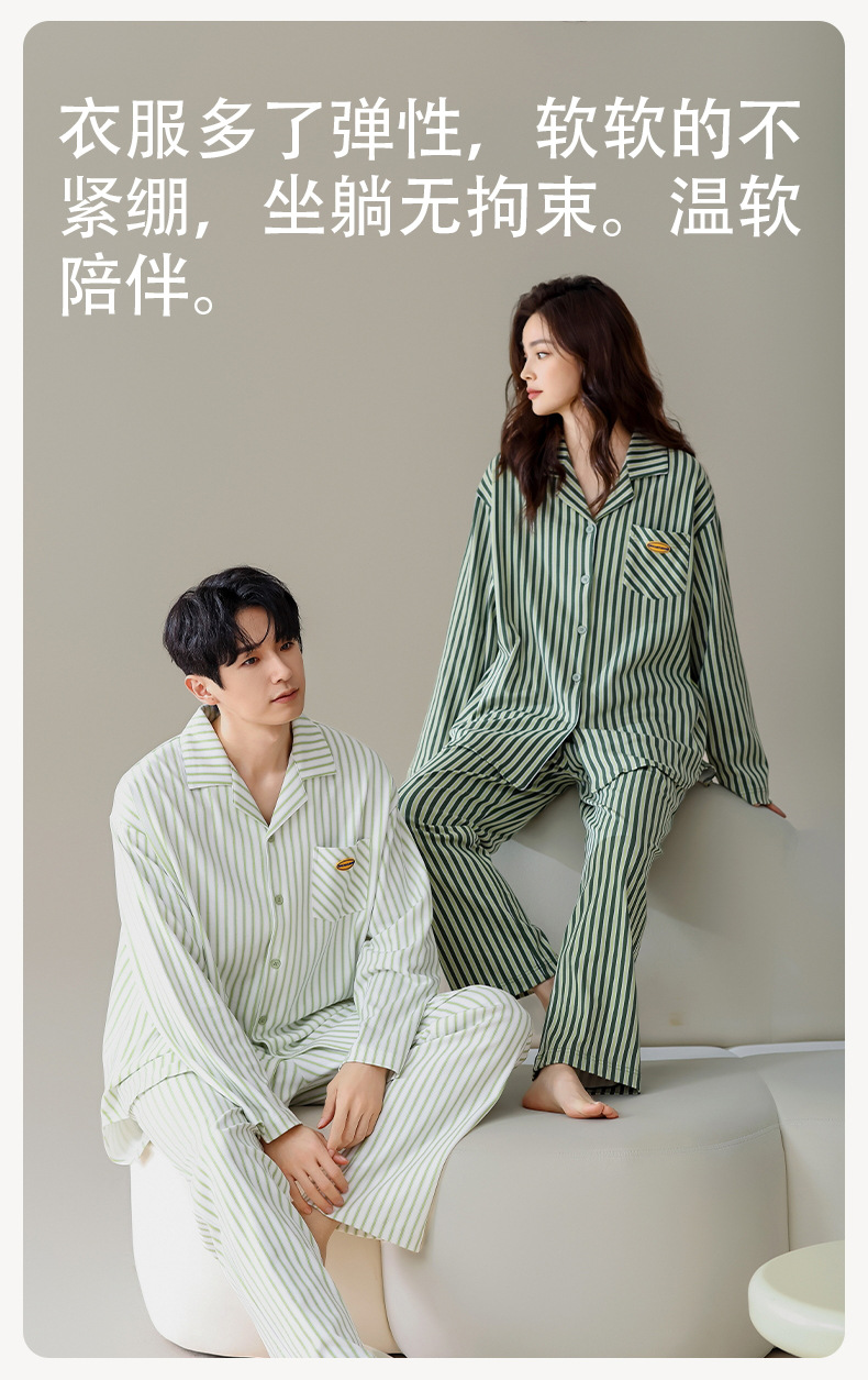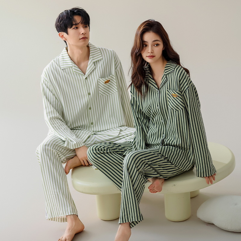 면화 커플 잠옷 봄과 가을 긴 소매 간단한 줄무늬 카디건 남성과 여성의 플러스 사이즈 면화 홈 의류