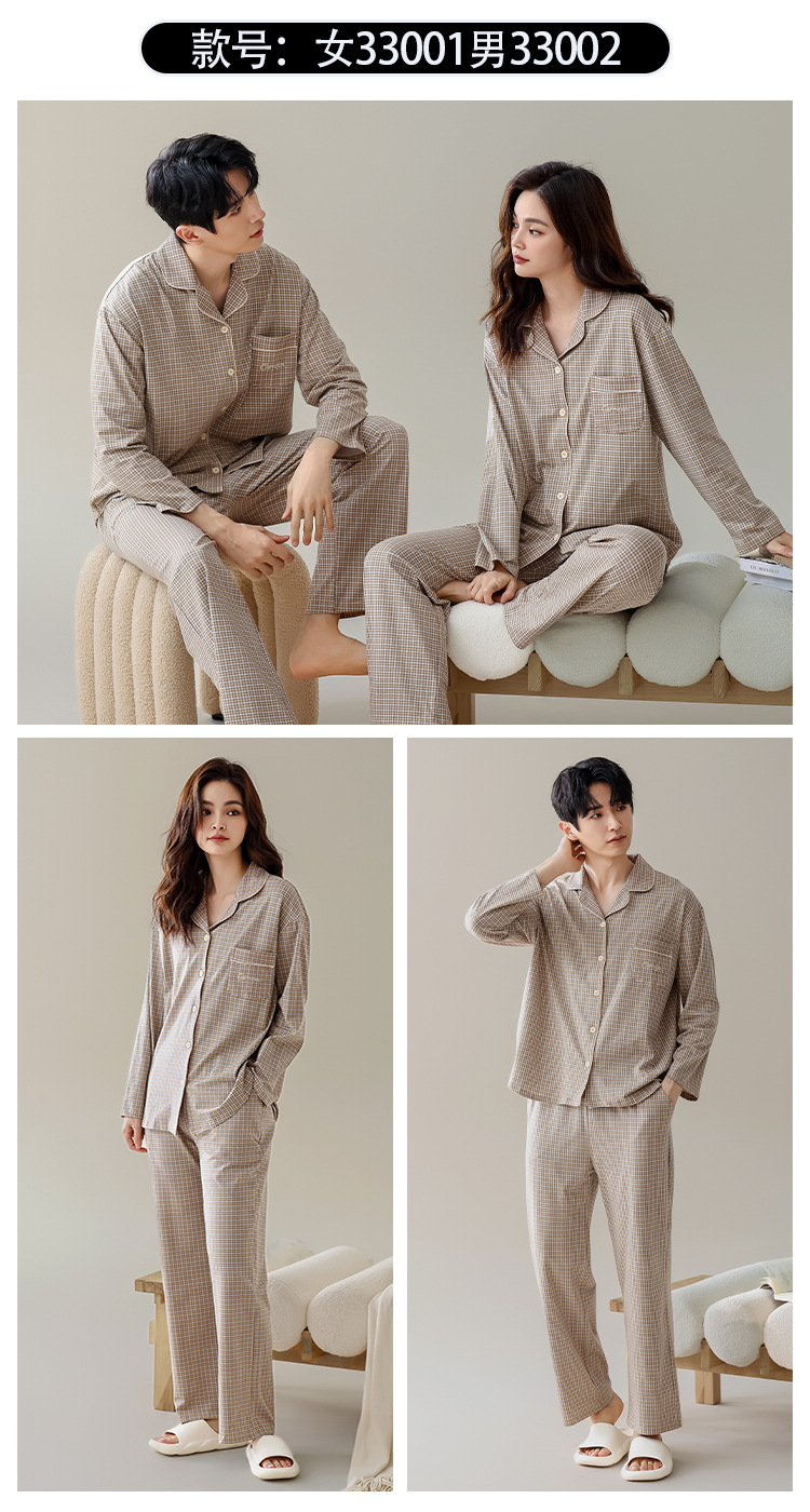 면화 커플 잠옷 봄과 가을 긴 소매 간단한 줄무늬 카디건 남성과 여성의 플러스 사이즈 면화 홈 의류스토어 가기