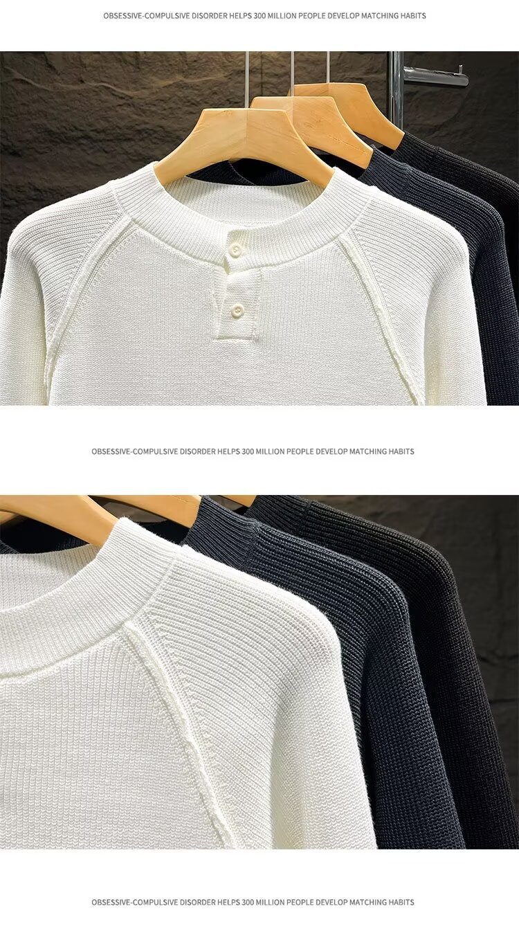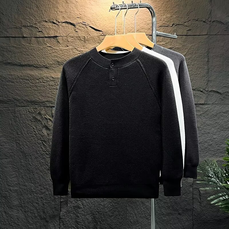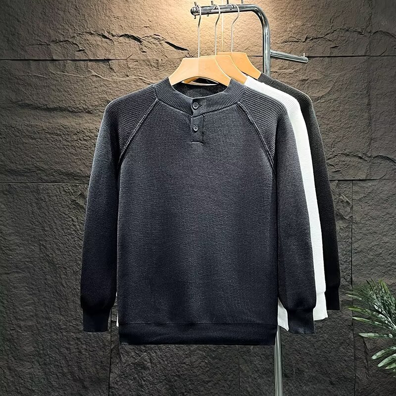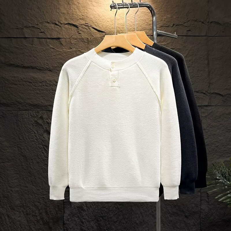 단색 크루 넥 니트베이스 셔츠 남자 한국 스타일 간단한 패션 올 매치 슬림 핏 남자 트렌디 한 가을과 겨울 풀오버 스웨터