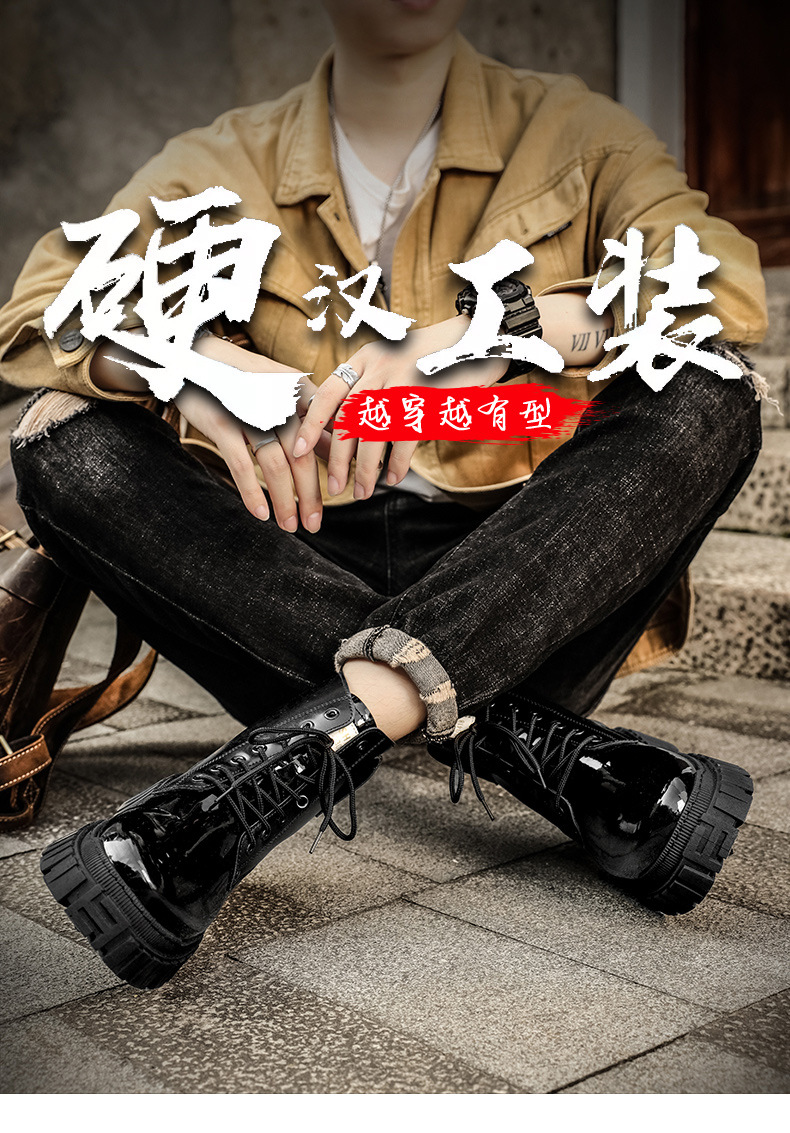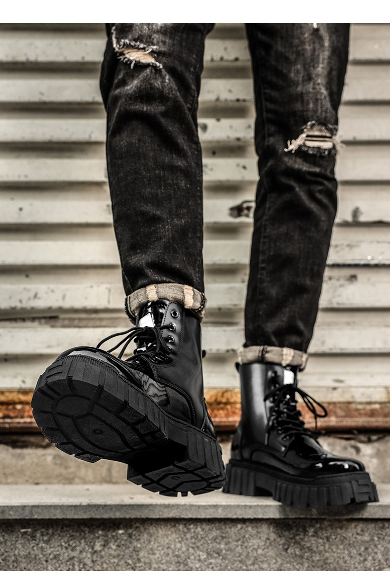 트렌디 한 남성 작업복 신발 가을 새로운 두꺼운 밑창 영국식 올 매치 남성 가죽 부츠 한국식 두꺼운 밑창 마틴 부츠 남성 신발 증가스토어 가기